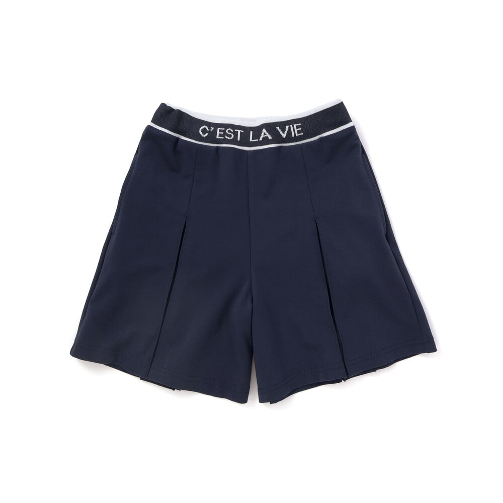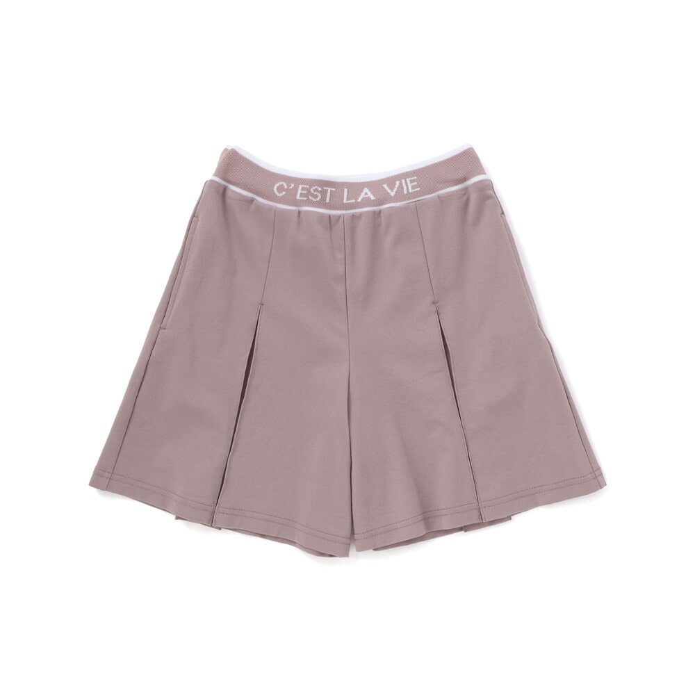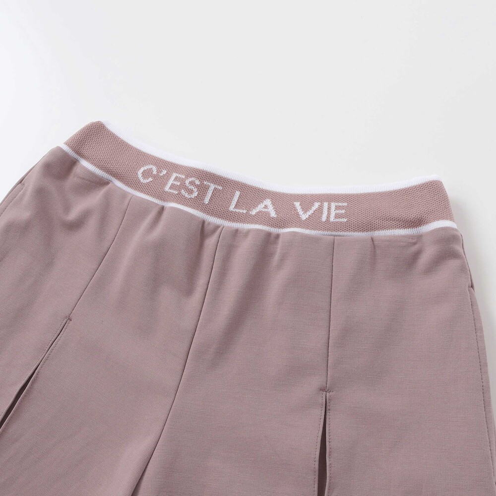 編み立てリブのロゴ入りのウエストがスポーティーな印象のキュロットパンツ。