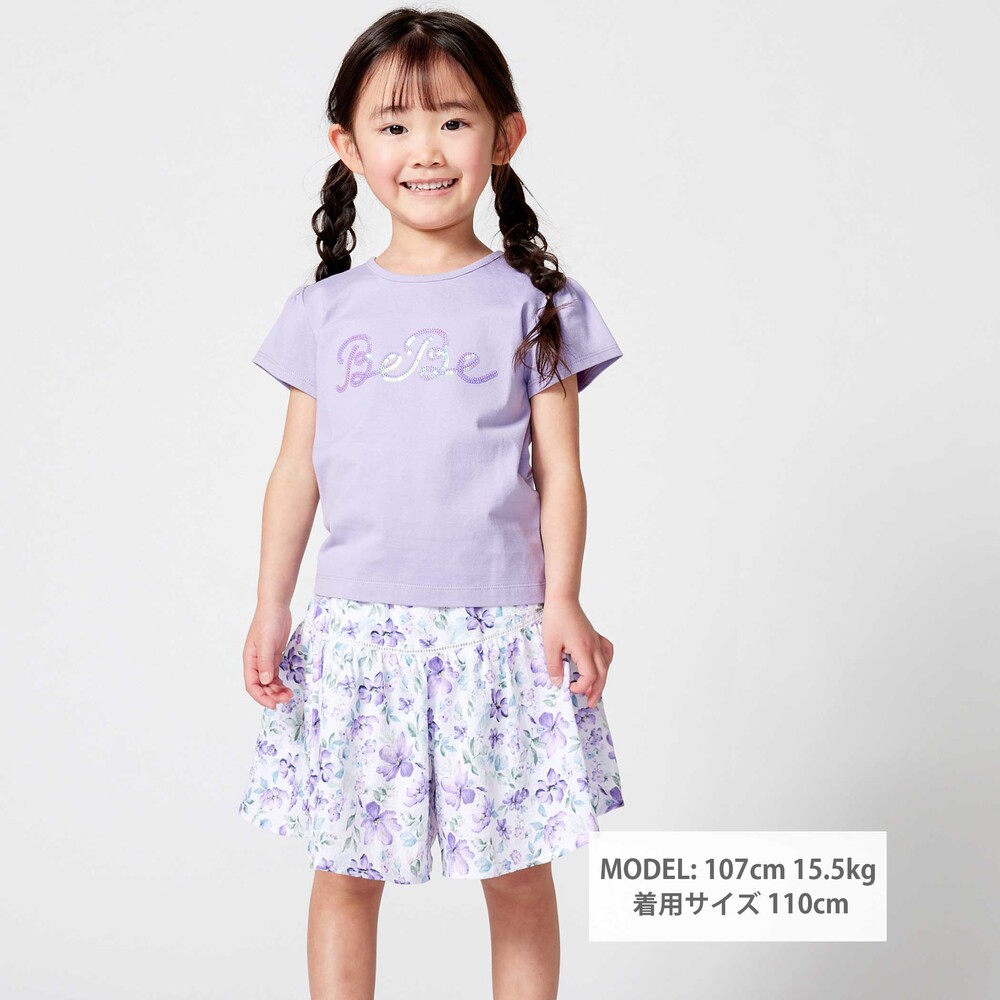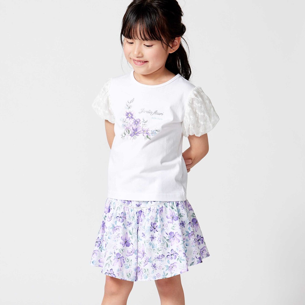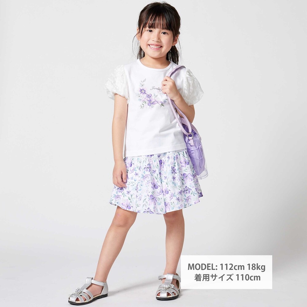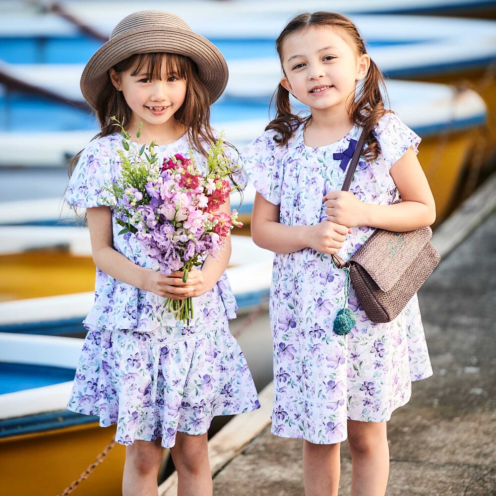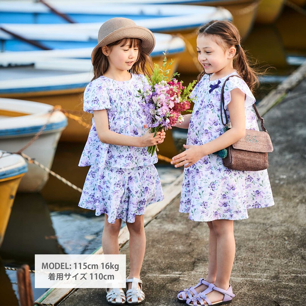 お揃い生地のブラウス(1106-83009)や、お花のプリントのTシャツ(1115-83021)とのコーデがおすすめです。