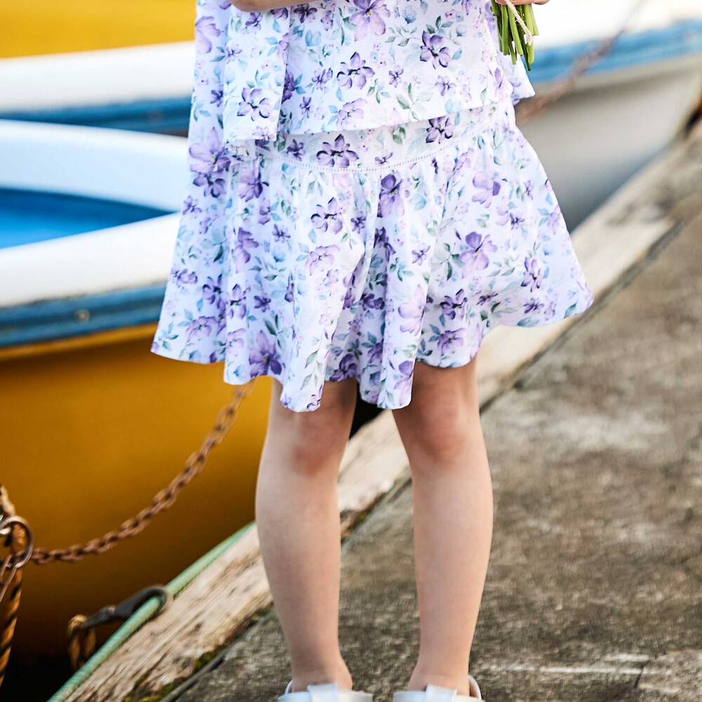 水彩タッチの花柄と、軽やかな素材感で涼し気な夏のガーリースタイルを表現。