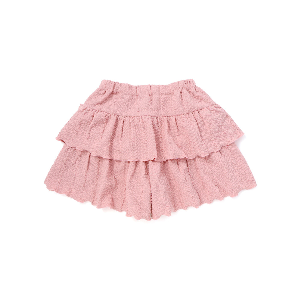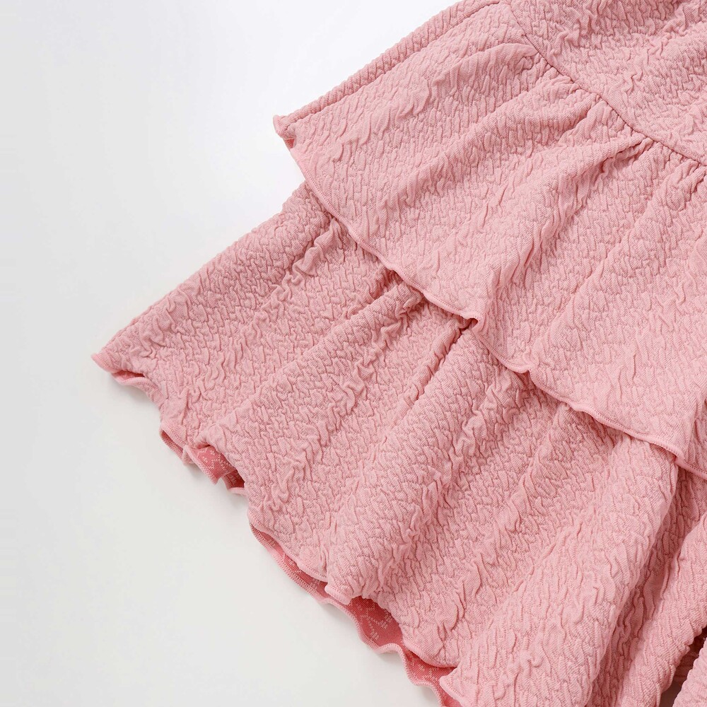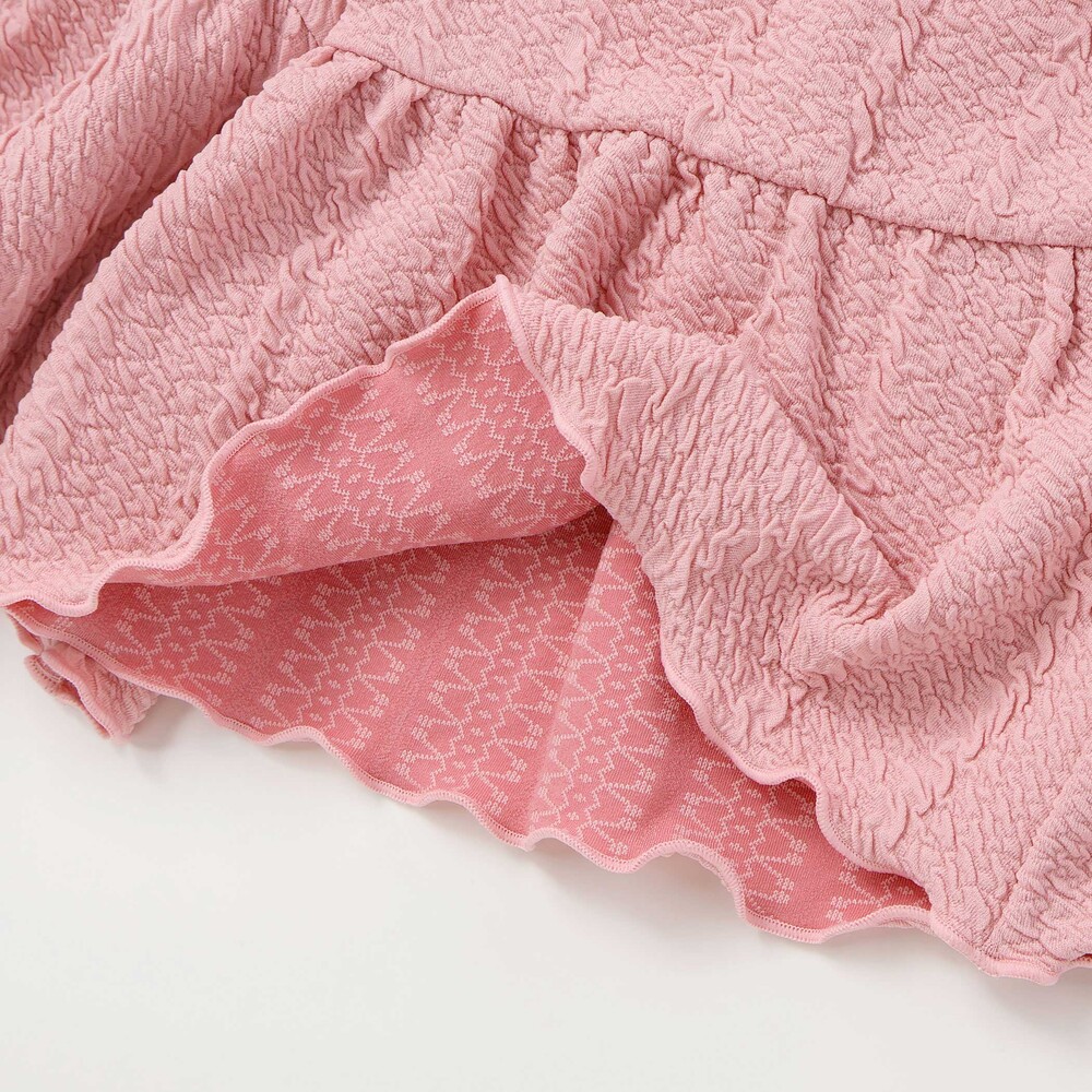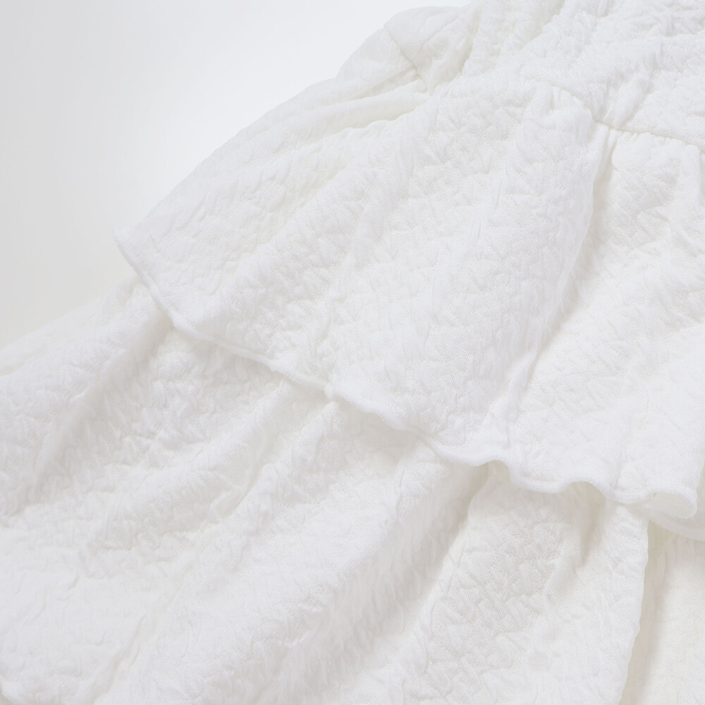 ポコポコとした表面感とメロウフリルの組み合わせがとっても可愛い1着。