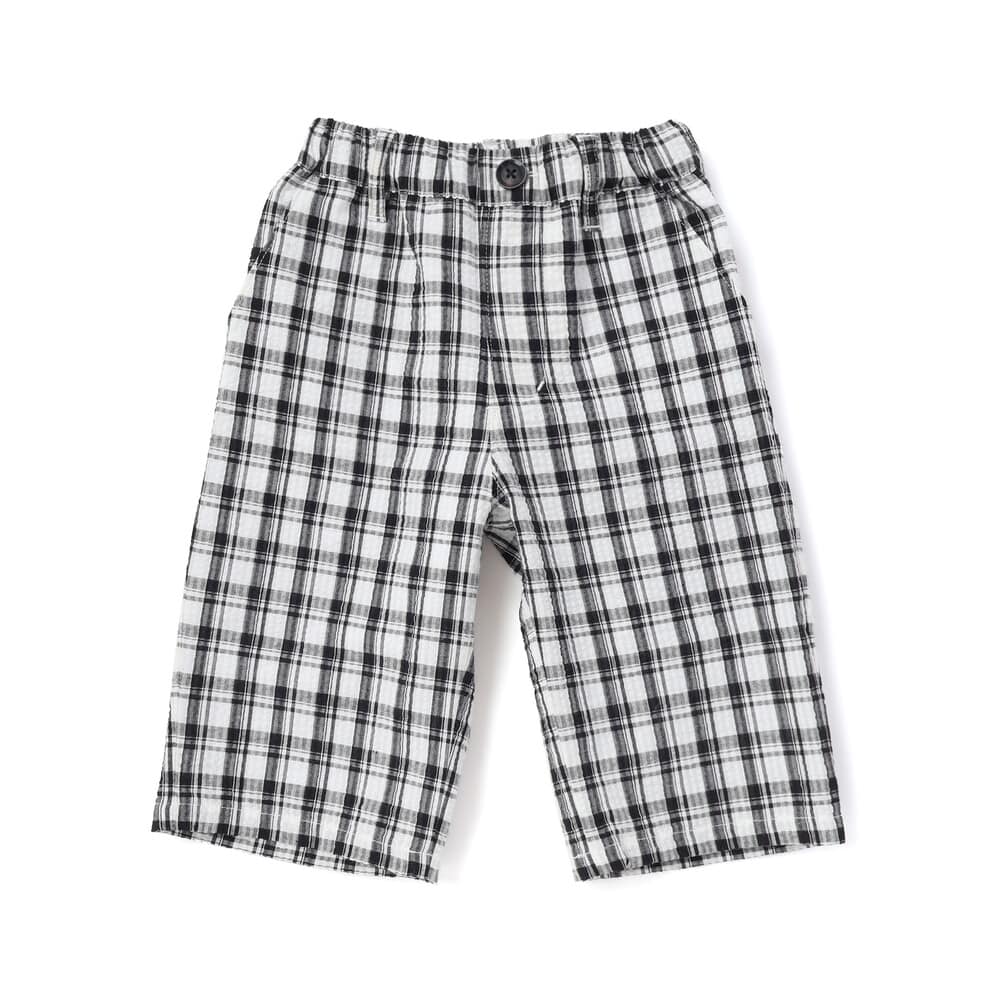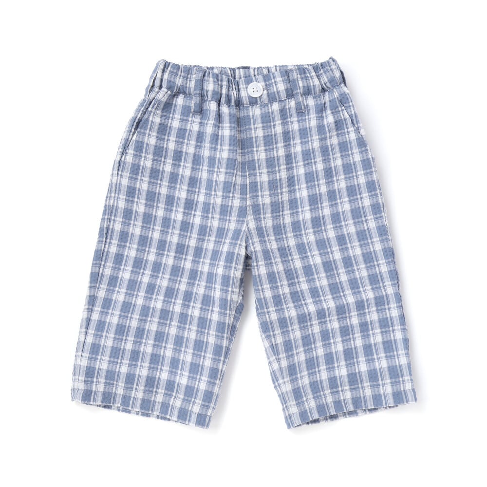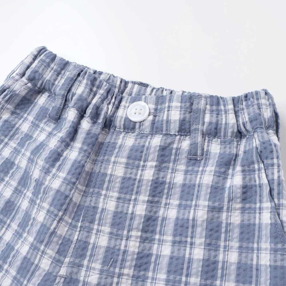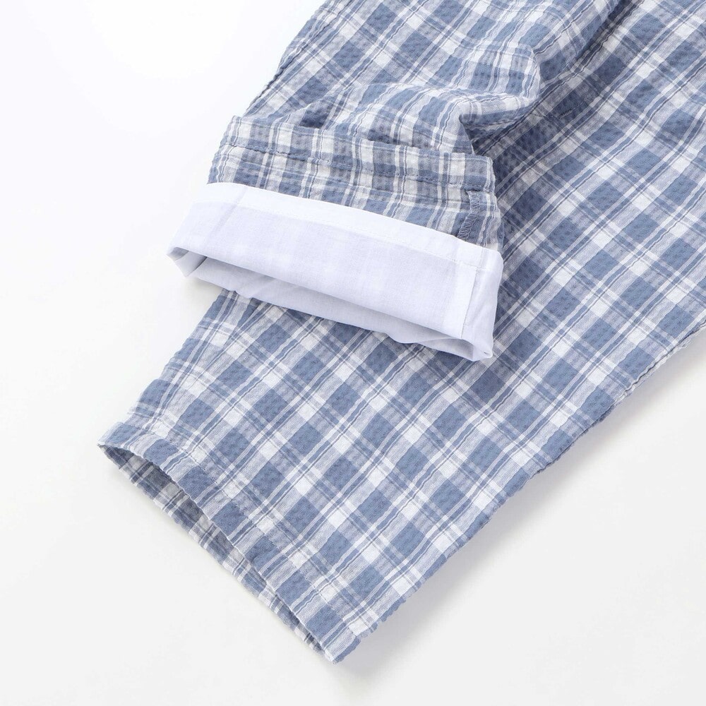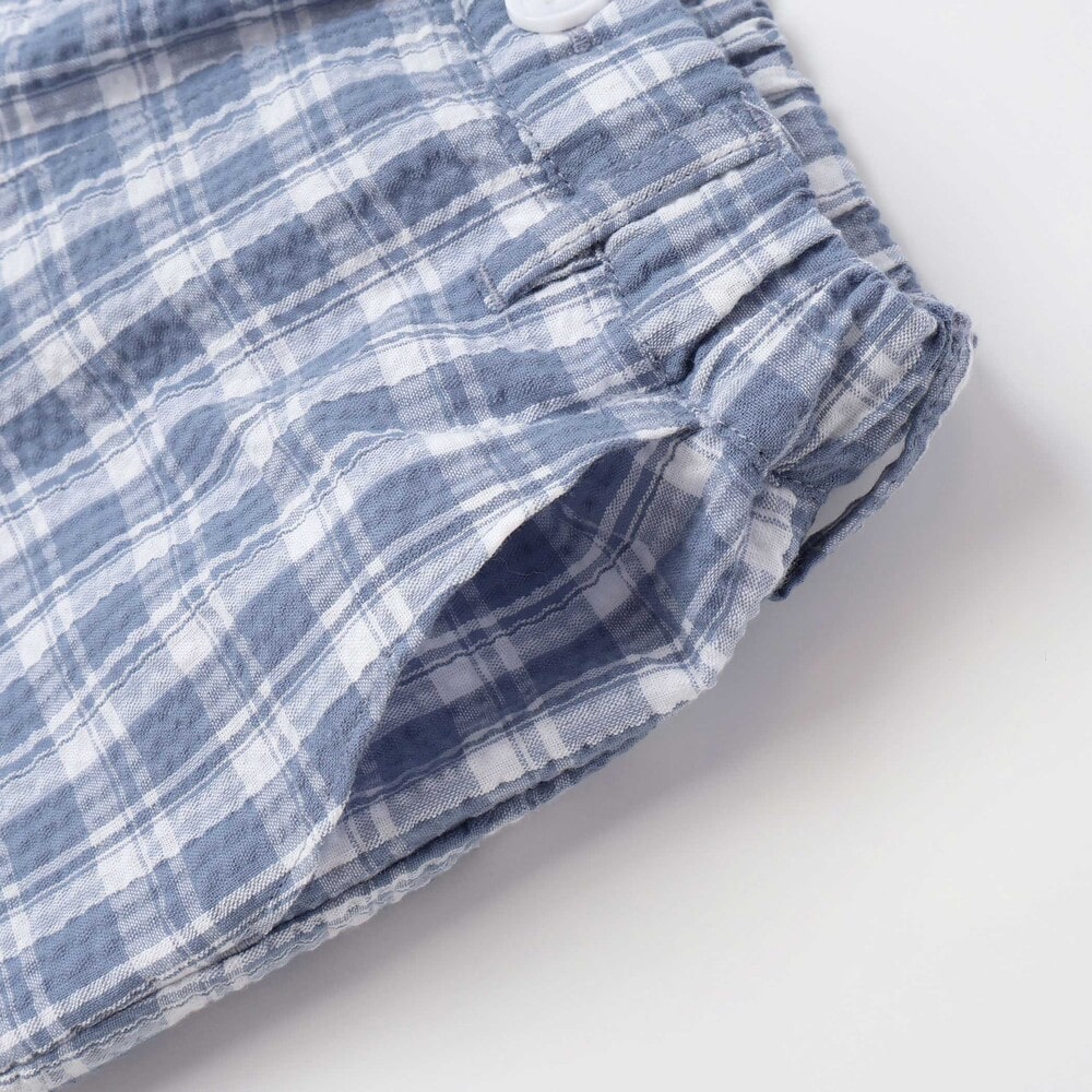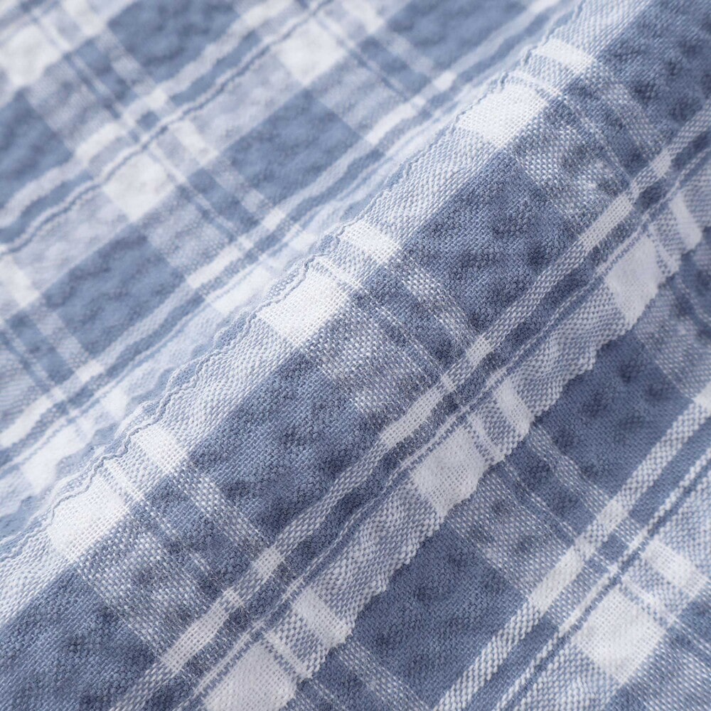 凹凸感のあるサッカーチェック素材を使用した軽い着心地の1着。