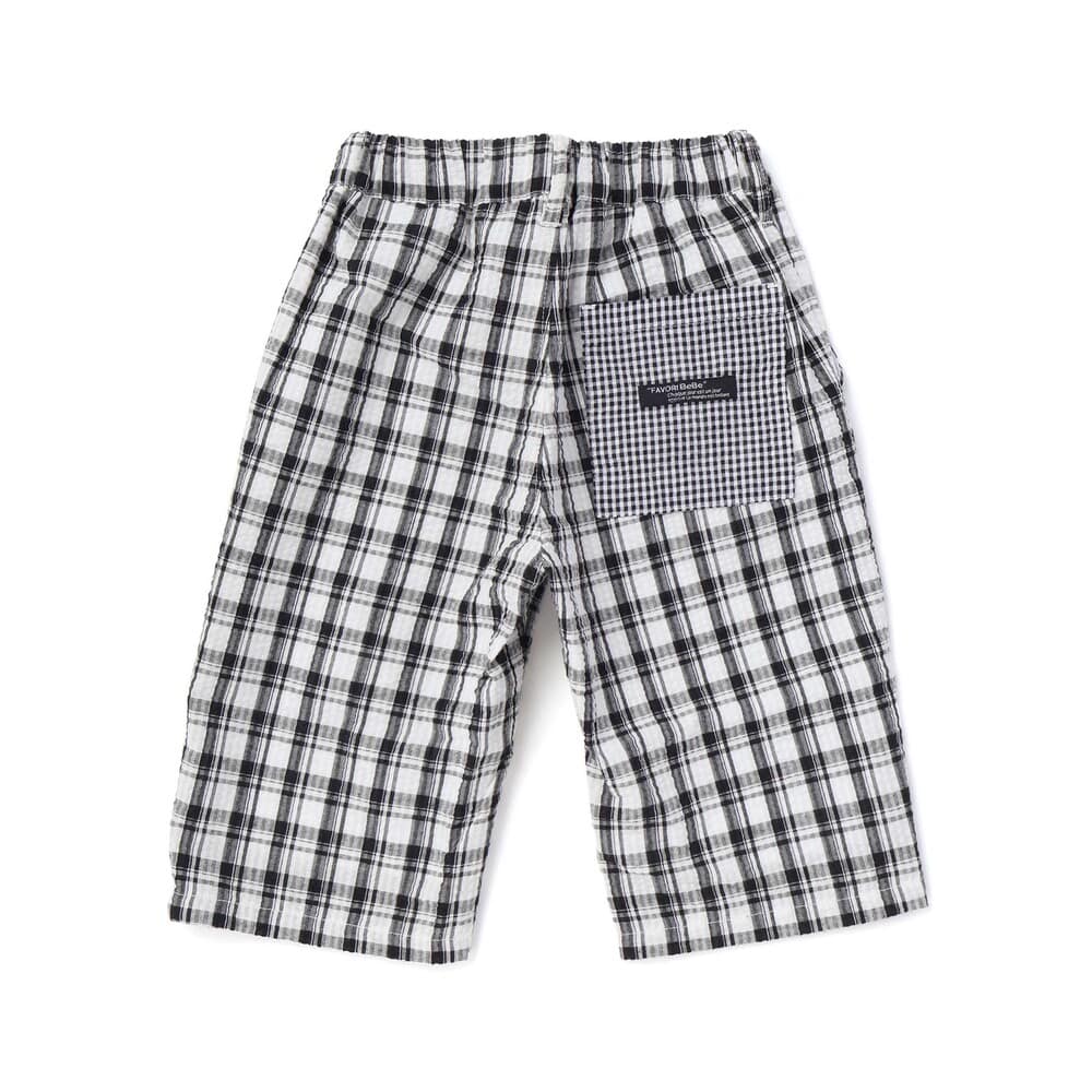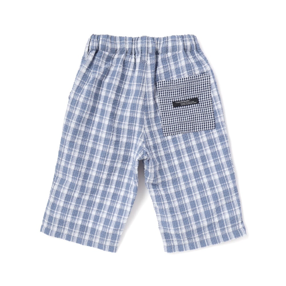 後のポケットにはデザインポイントで細かなギンガムチェックを使用しています。