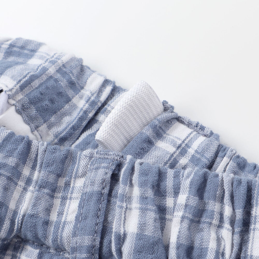 細かな凹凸のでる織りで肌に貼りつきにくく清涼感のある肌当たりのサッカー生地を使用。