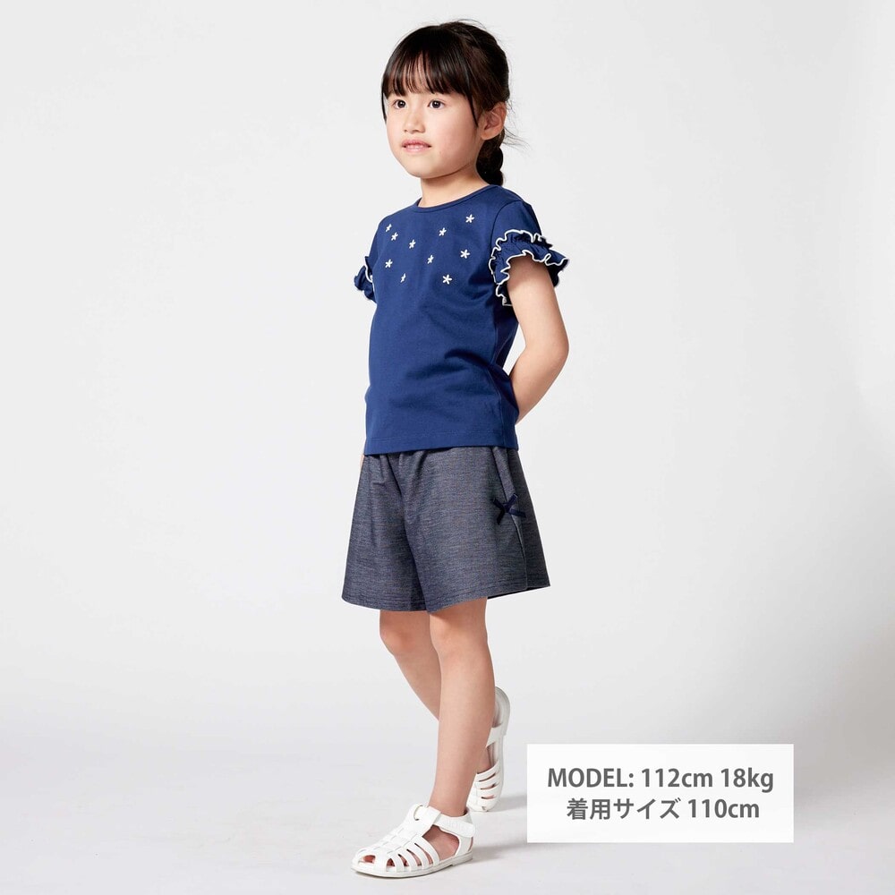 100cm:ウエスト21 パンツ丈25.5 裾幅28.5 110cm:ウエスト22 パンツ丈28 裾幅29.5 120cm:ウエスト23 パンツ丈30.5 裾幅31.5 130cm:ウエスト24.5 パンツ丈33 裾幅34 140cm:ウエスト26 パンツ丈36 裾幅36 150cm:ウエスト27 パンツ丈38.5 裾幅38.5 |