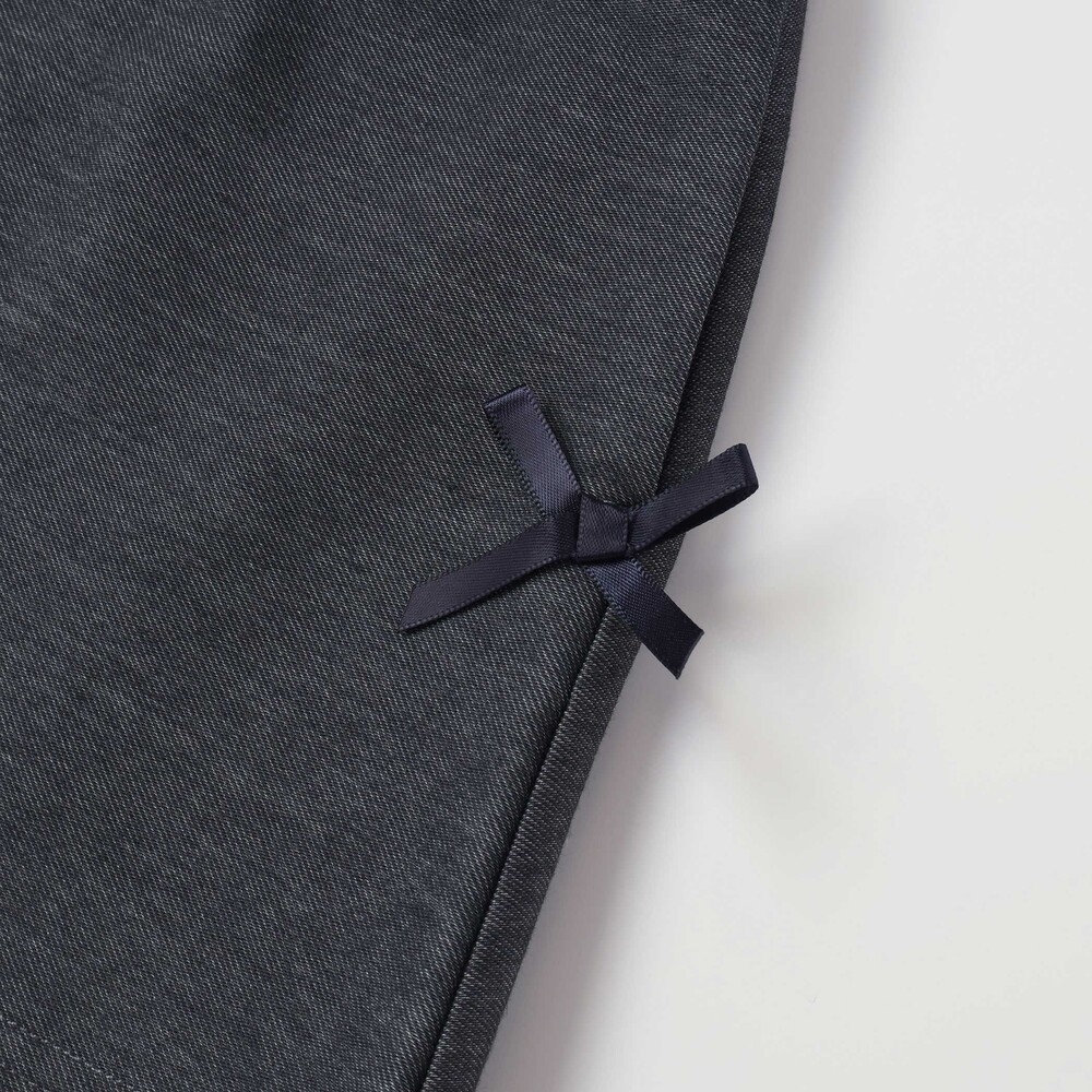 程よく広がるAラインのシルエットに小さなリボンがさりげない。