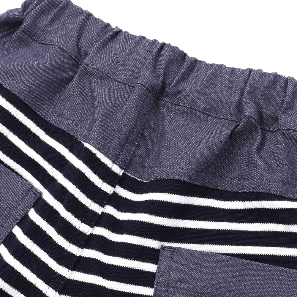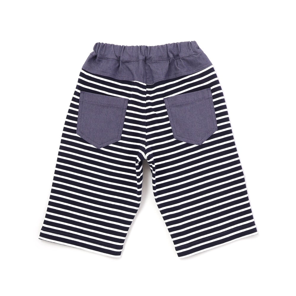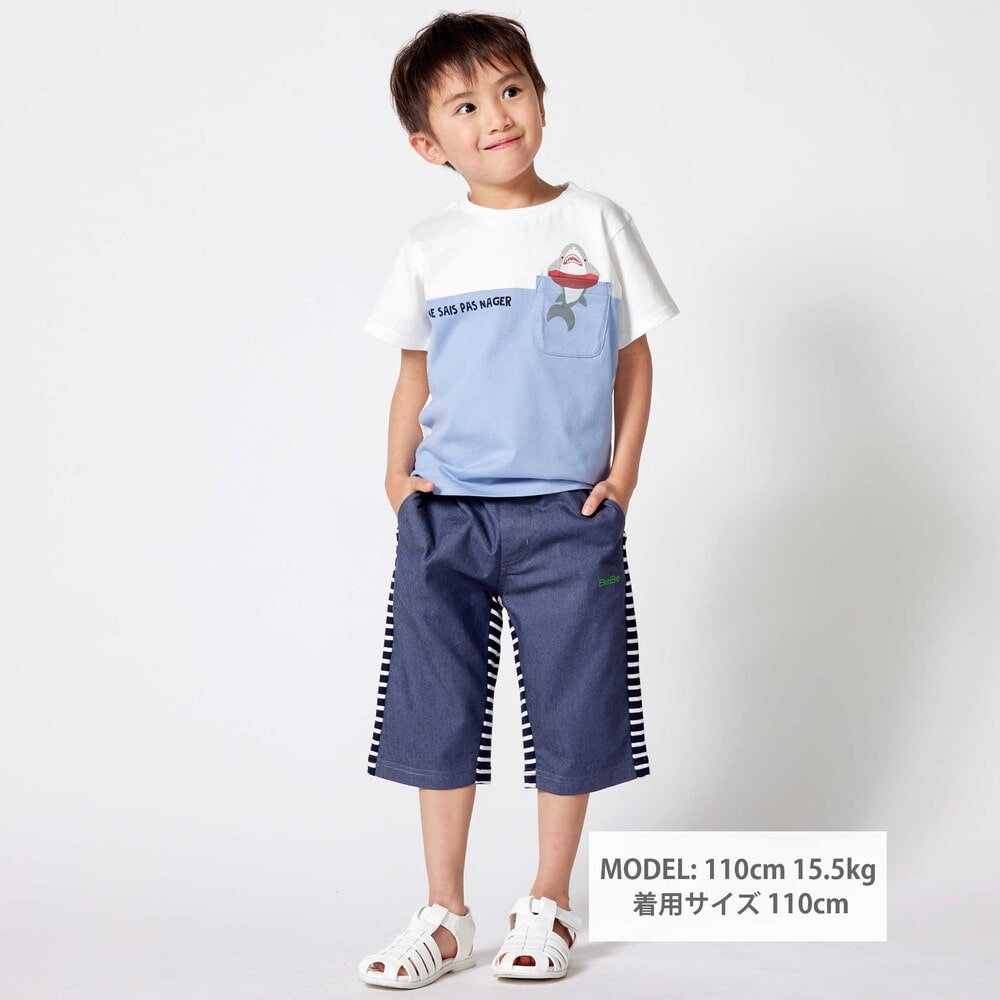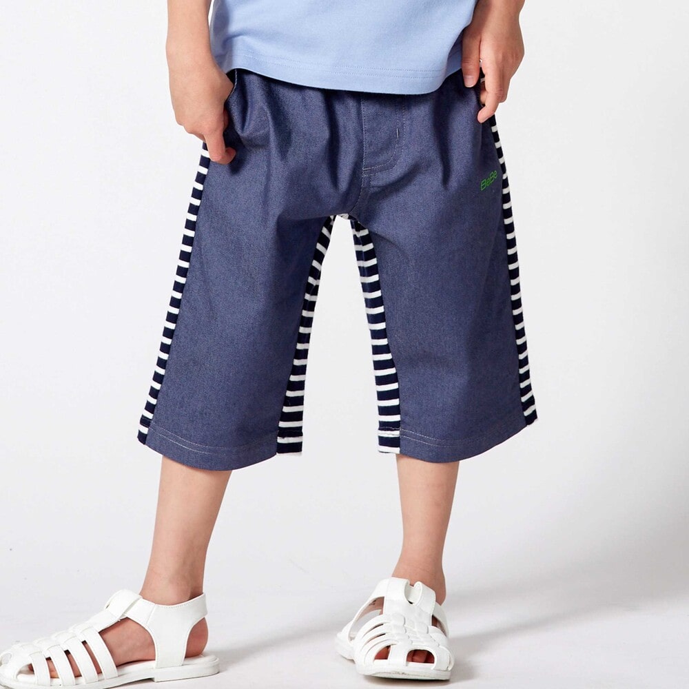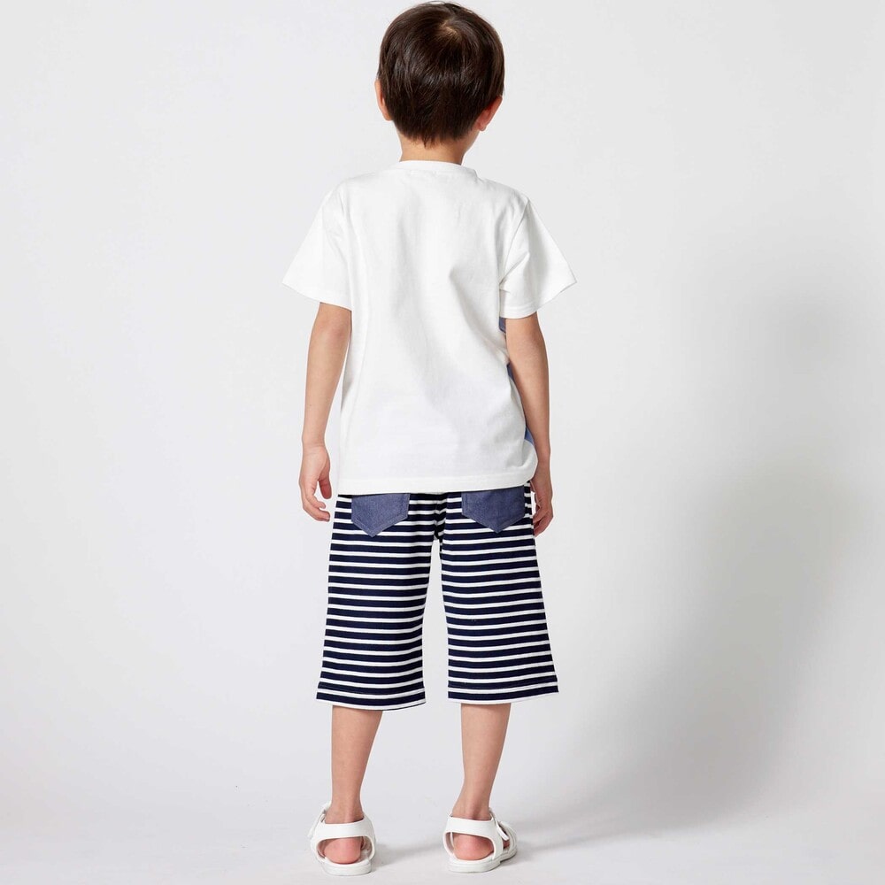 前後で異なる生地に切り替えた男の子用6分丈パンツ。