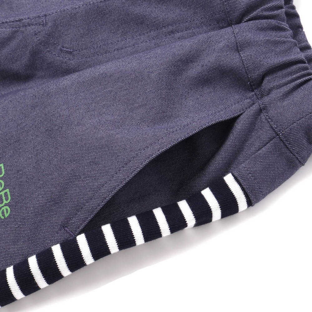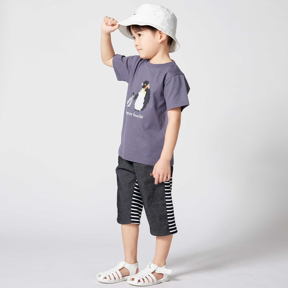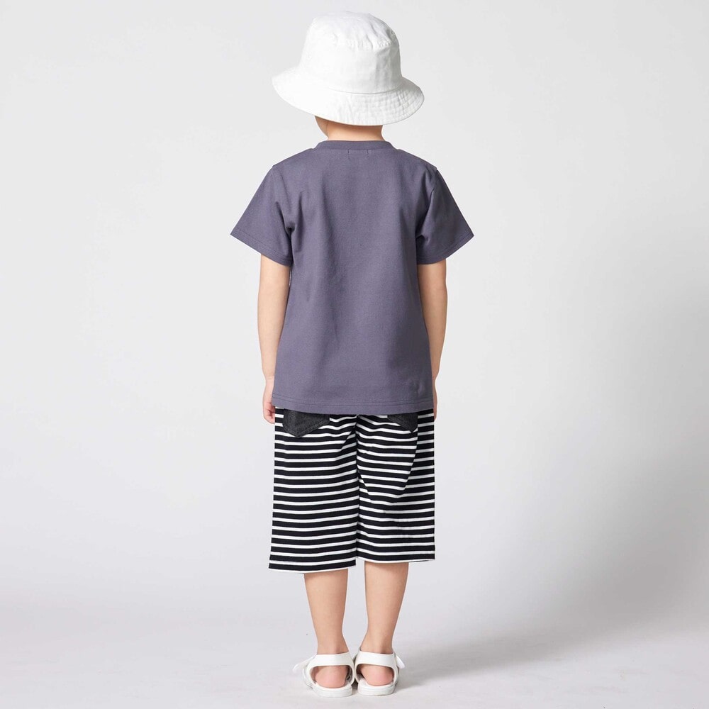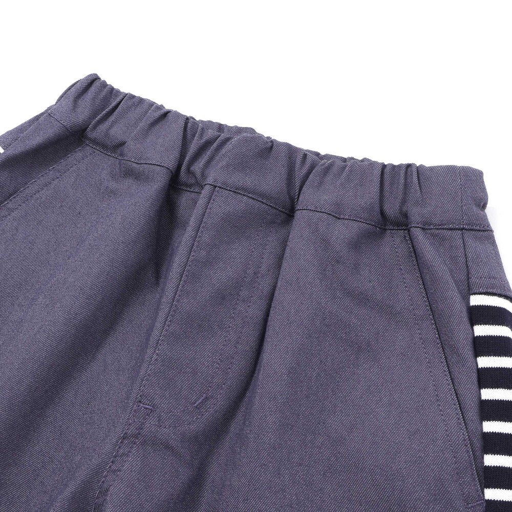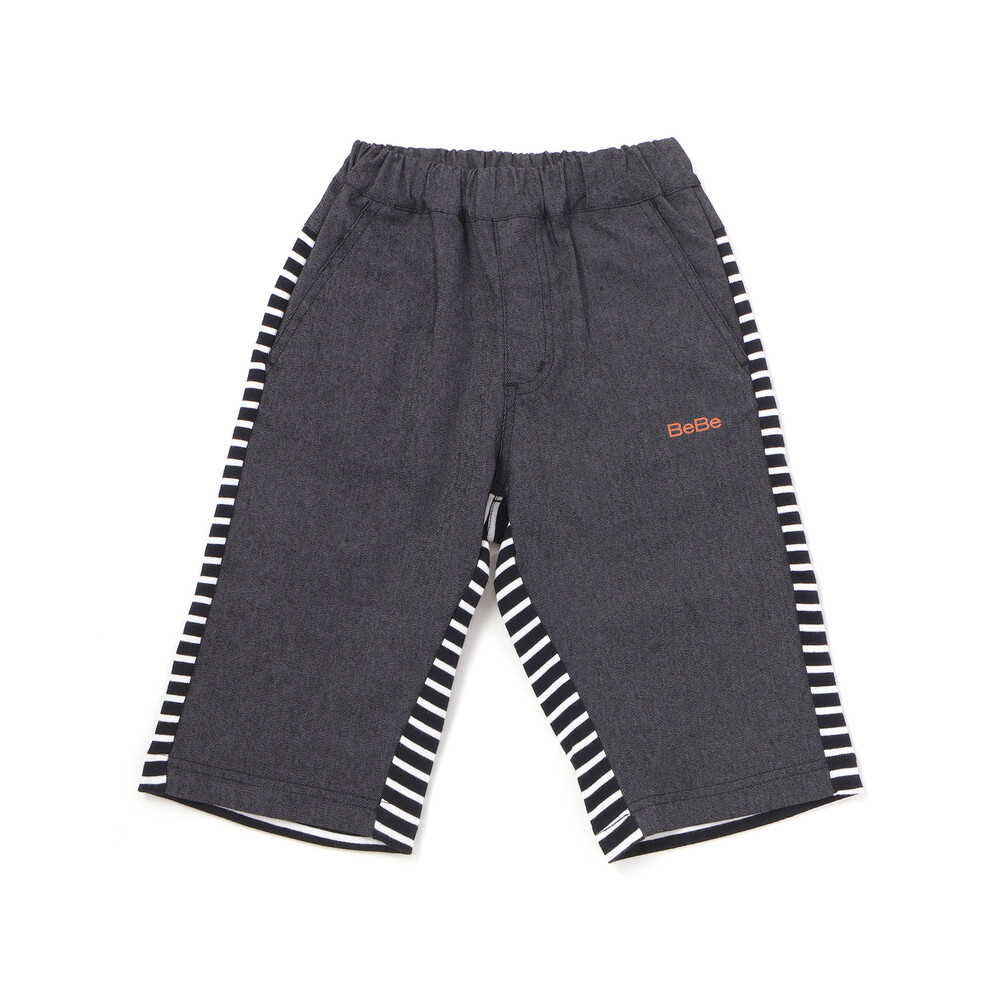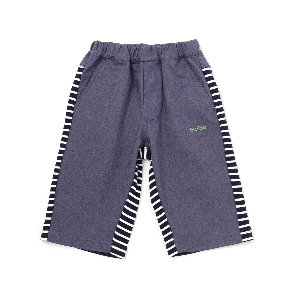 前後で異なる生地に切り替えた男の子用6分丈パンツ。