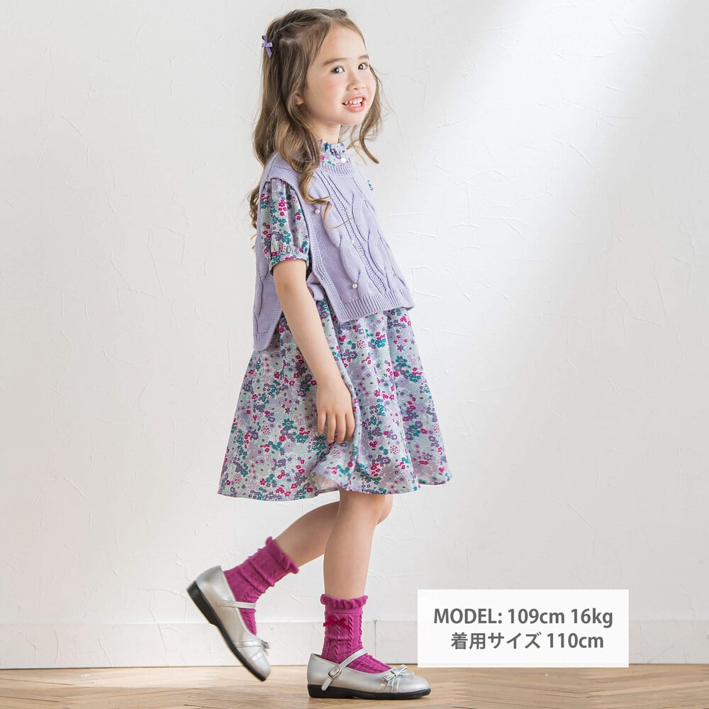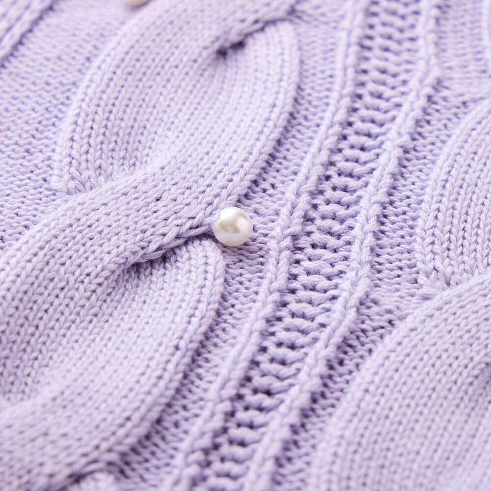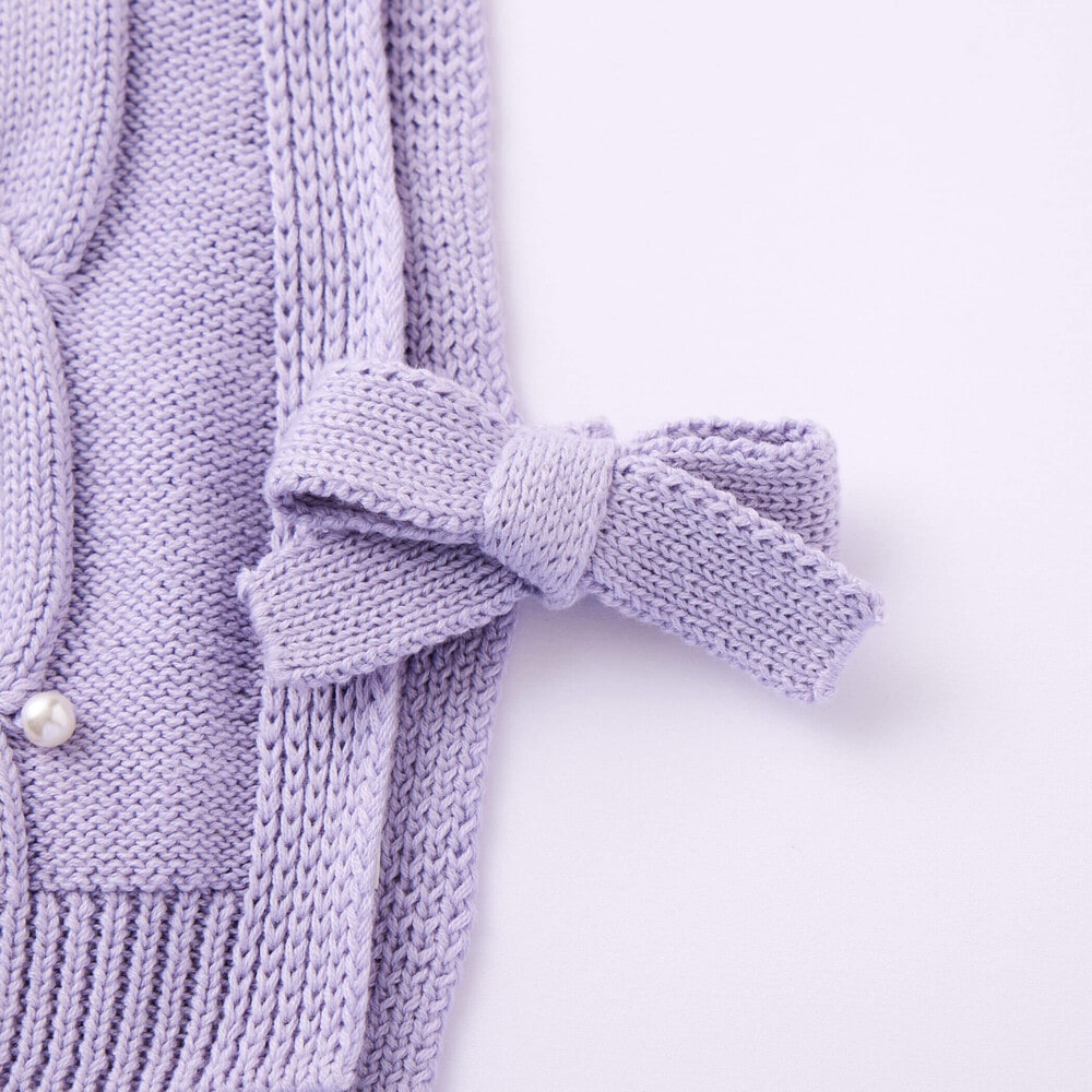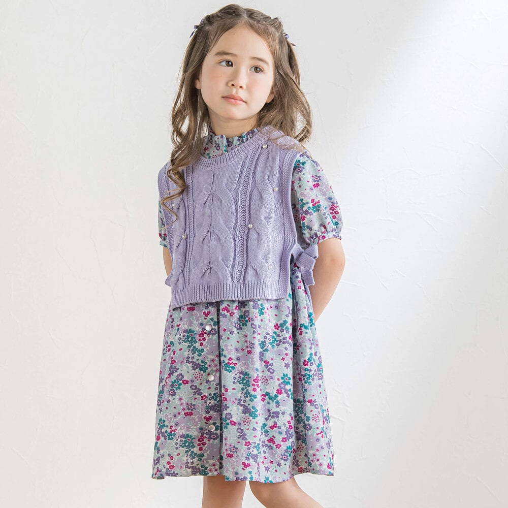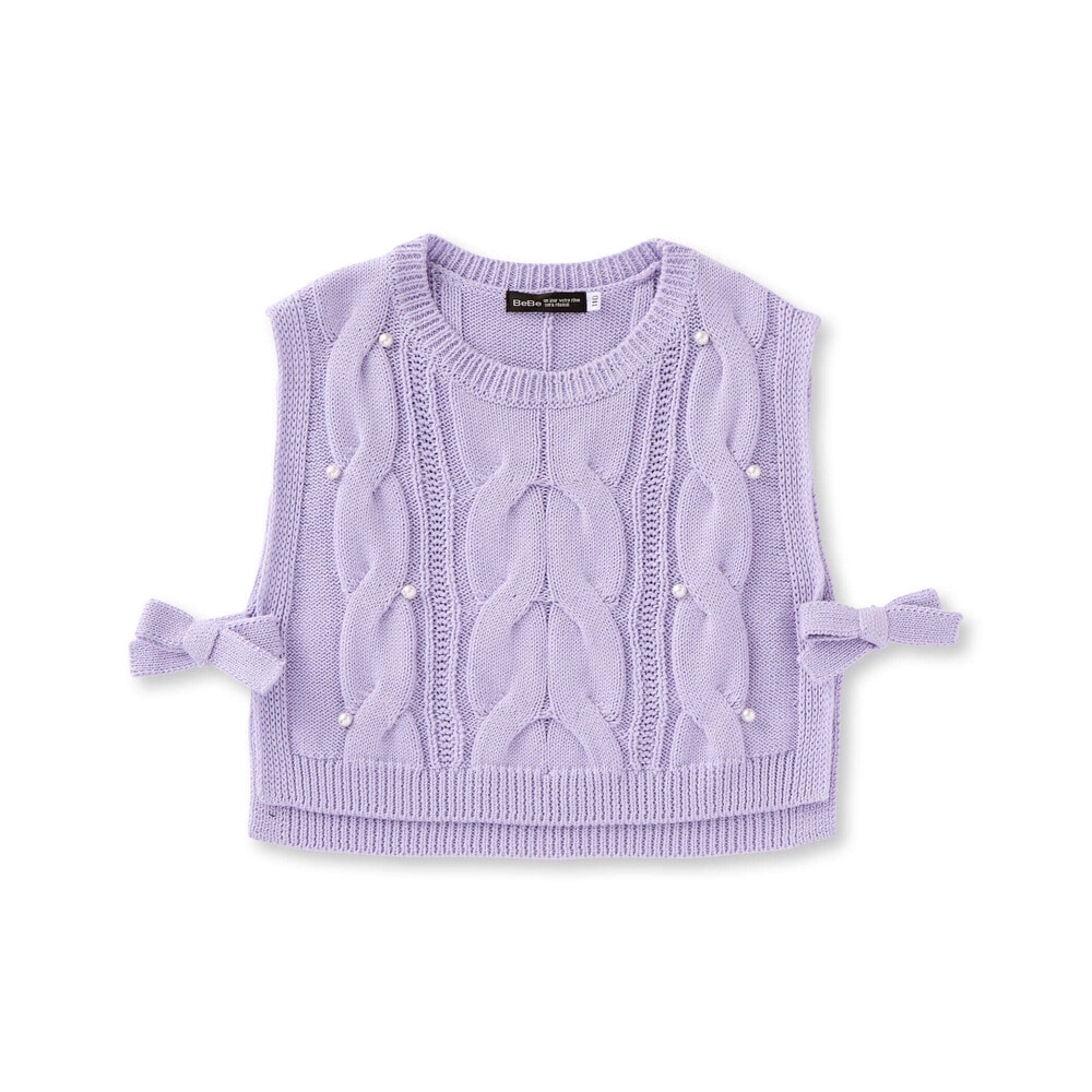 優しいパープルカラーが目を引く女の子向けニットベスト。