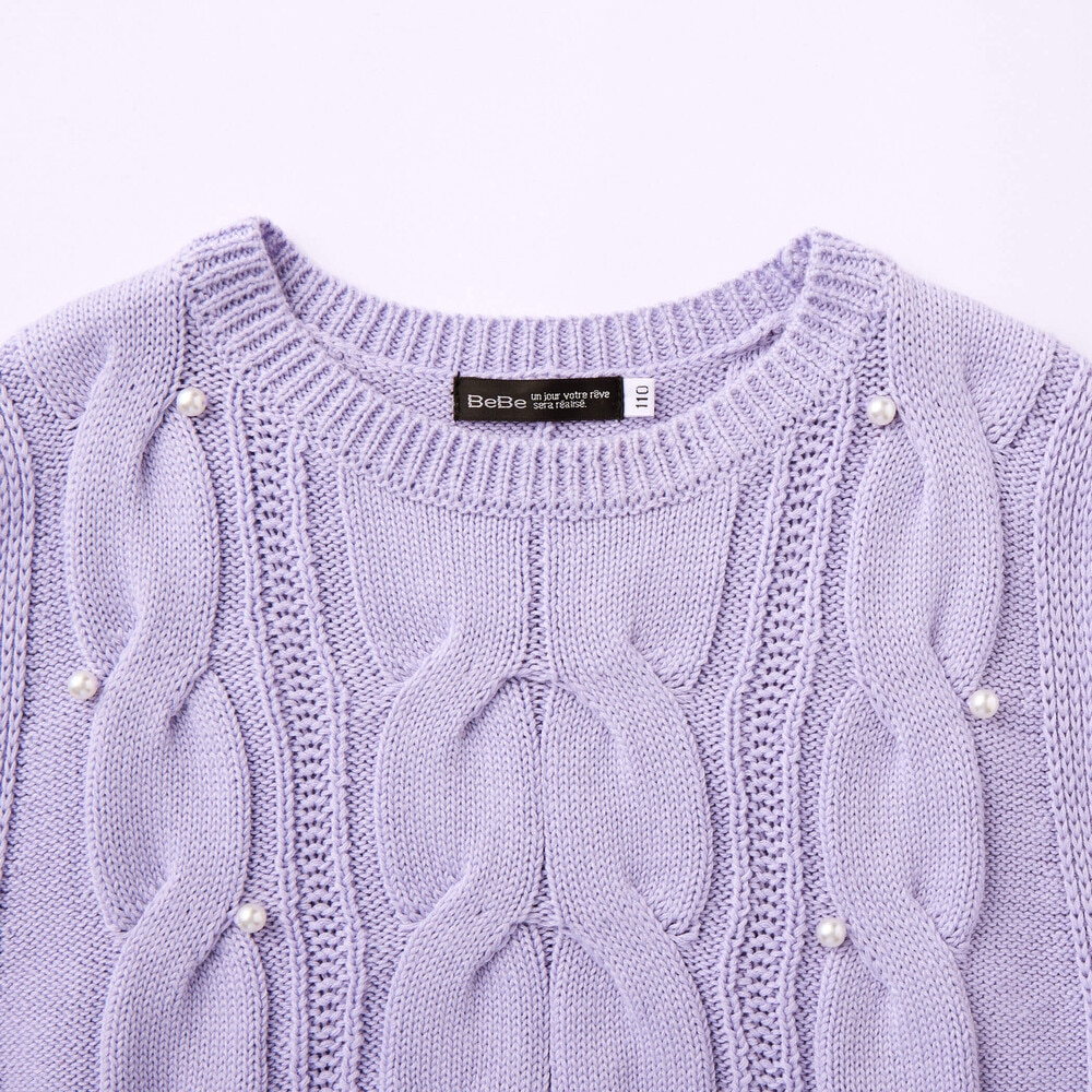 クラフト感ある大き目のケーブル編みと、きらりと光るパールビーズがかわいいデザイン。