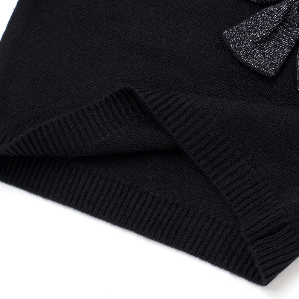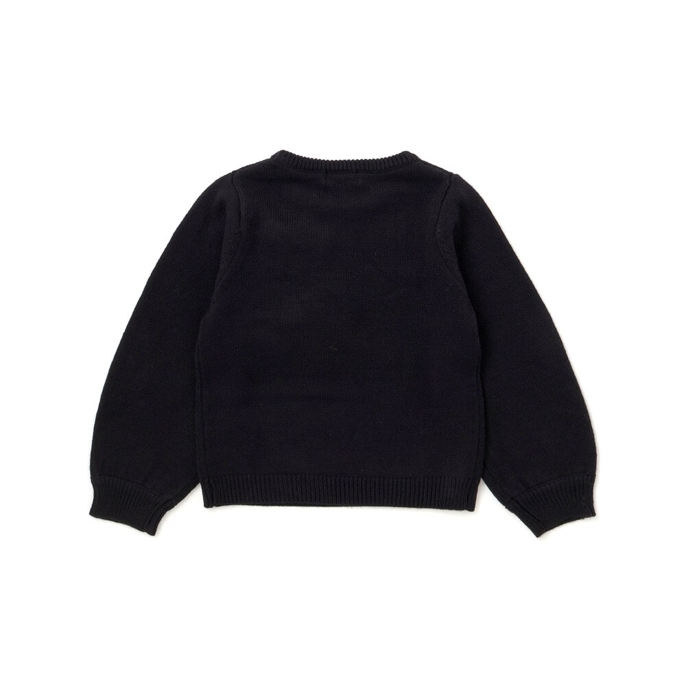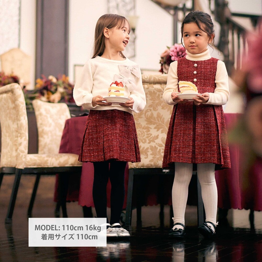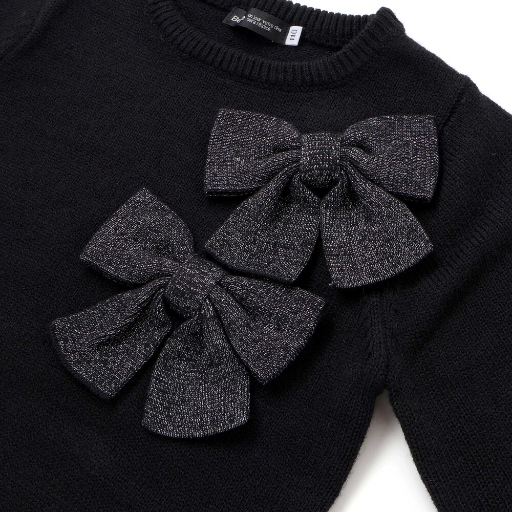 胸元に並んだ大きなリボンモチーフが華やかなセーター。