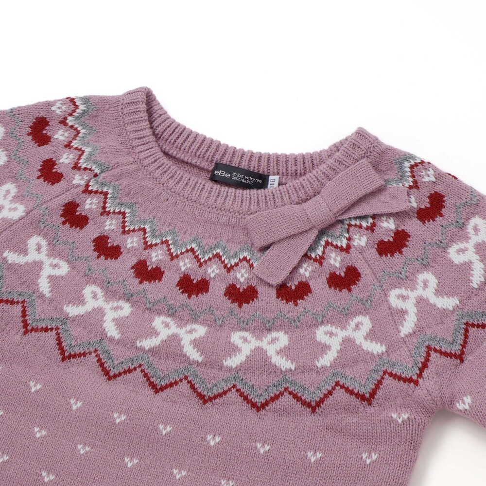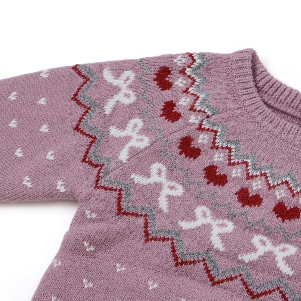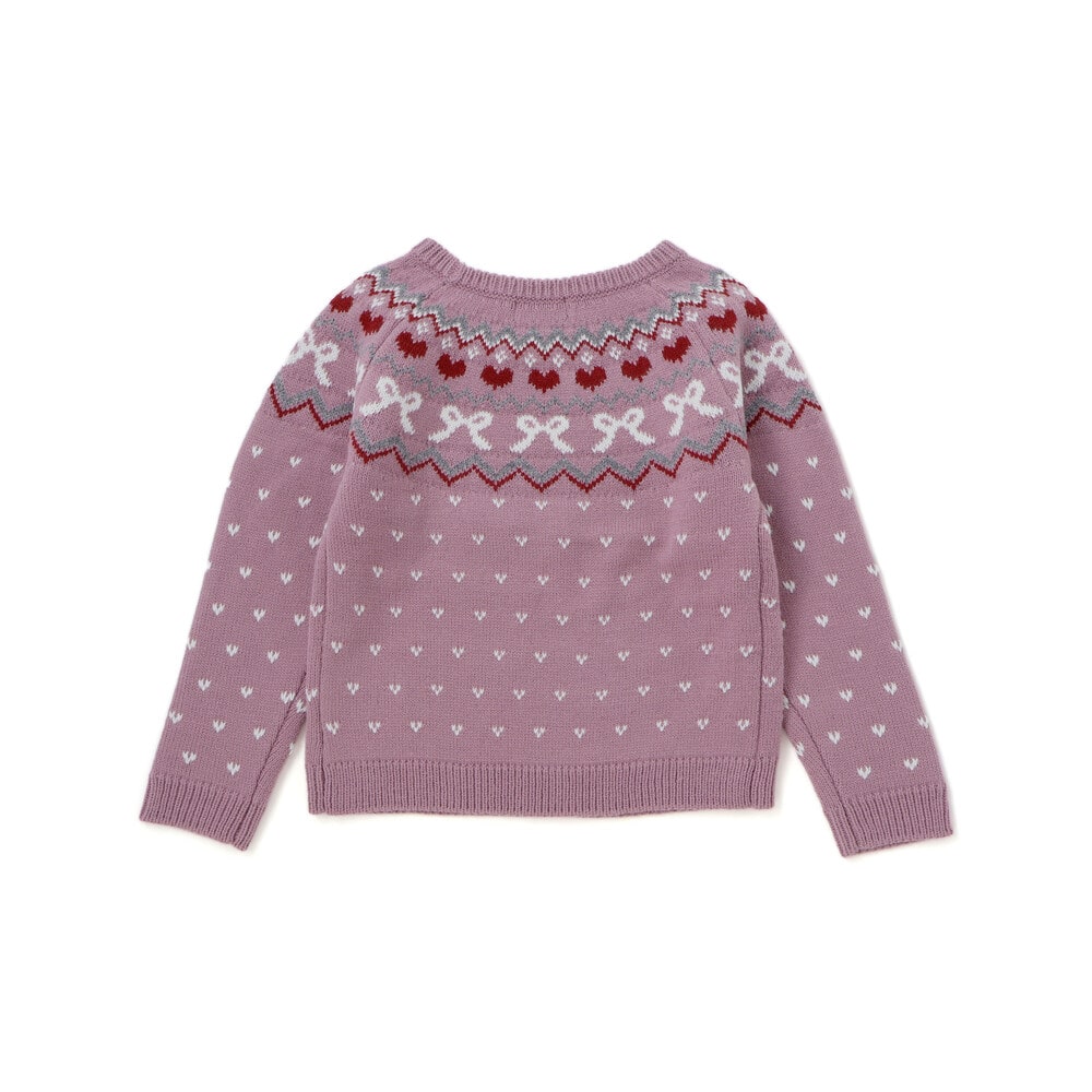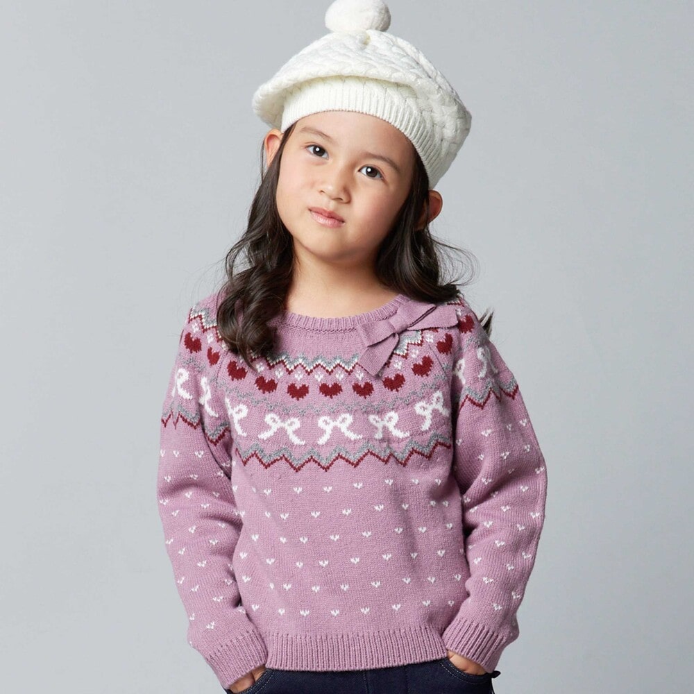 ノルディック柄にはリボンやハートの柄を混ぜて、今っぽさのあるガーリーな雰囲気に。