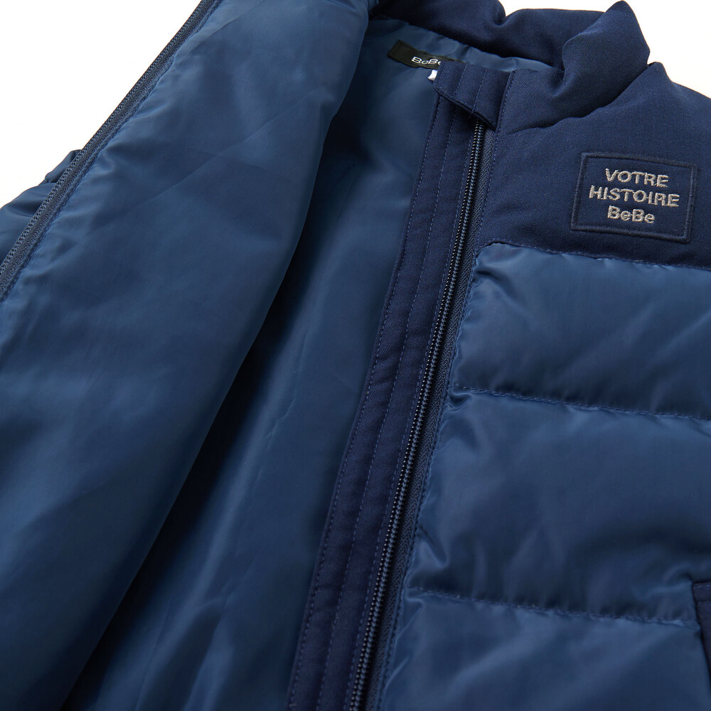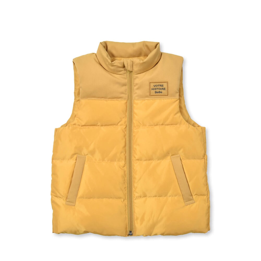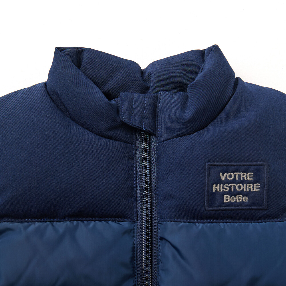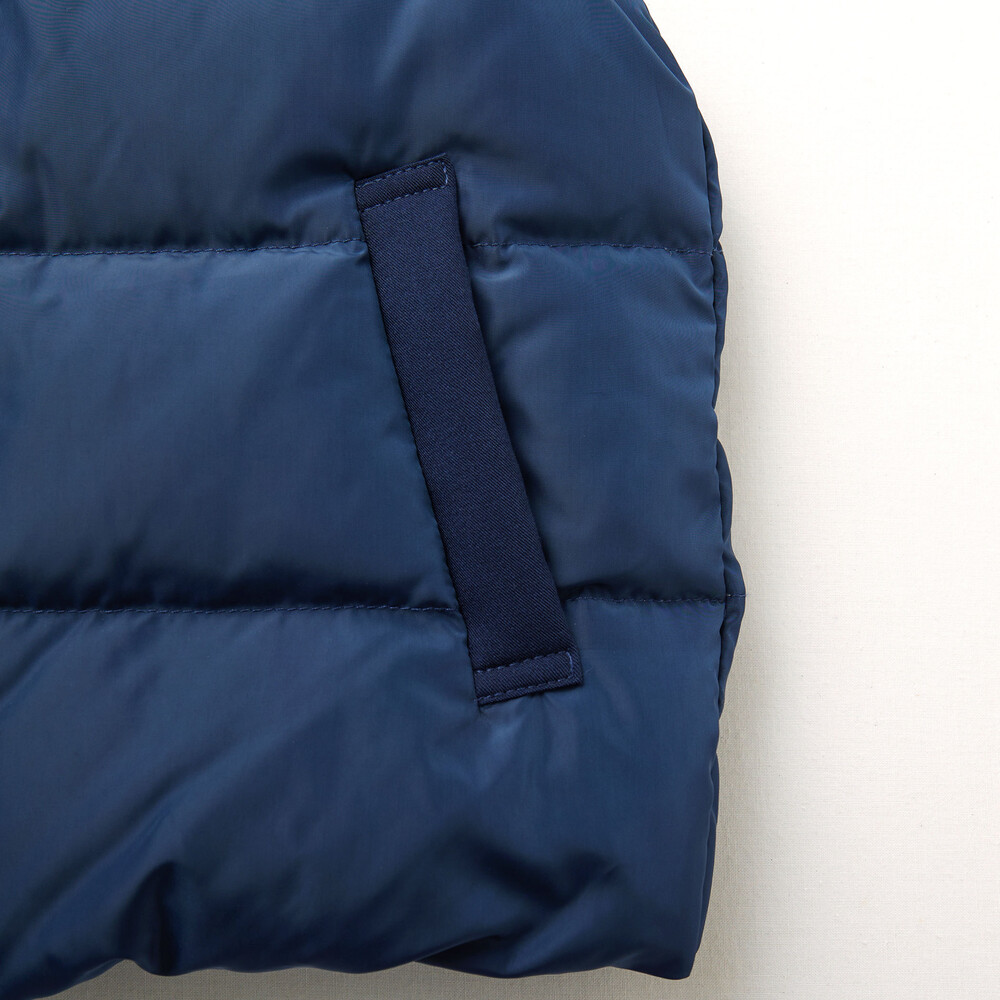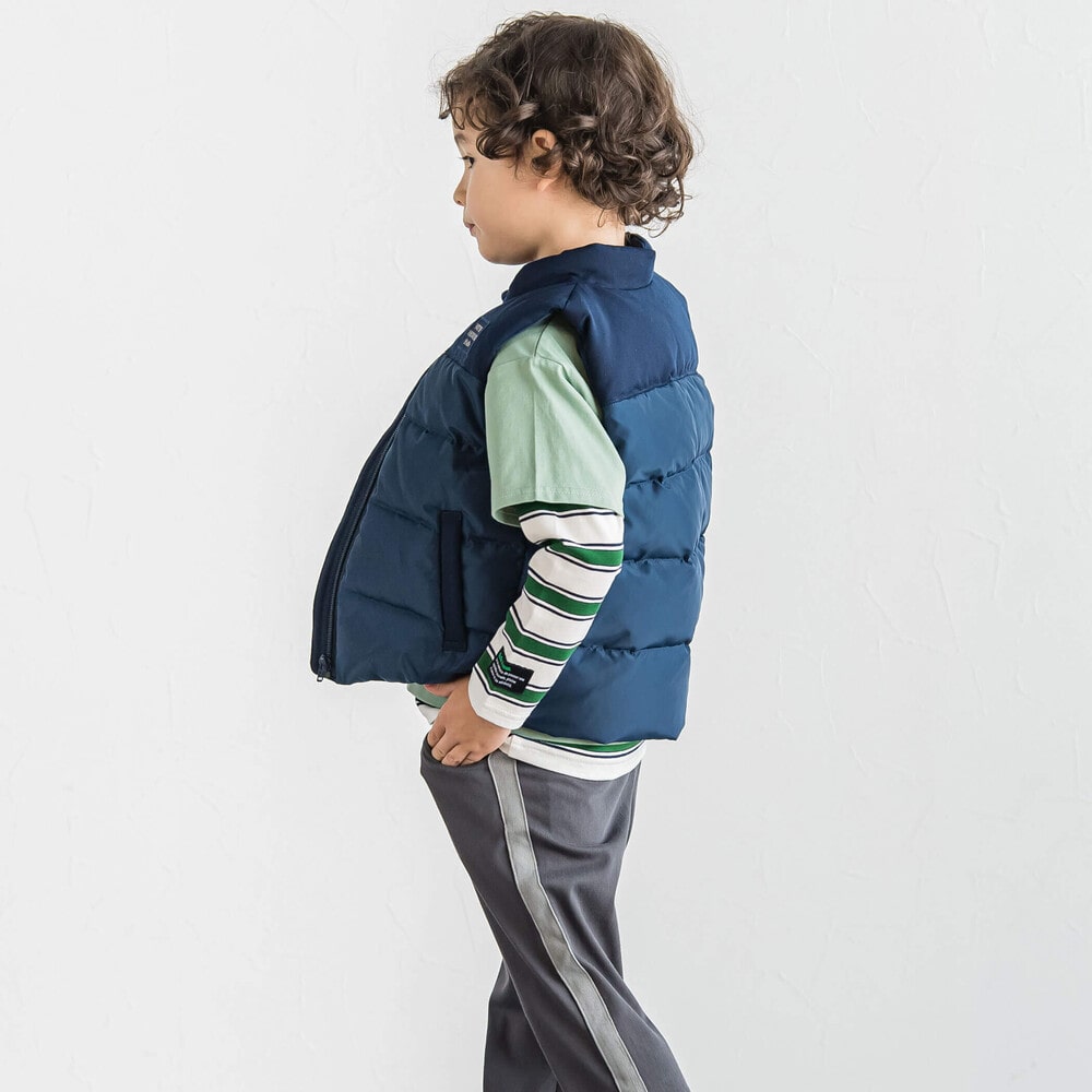 タフタとツイルの生地を上下で切り替えたダウンベスト。