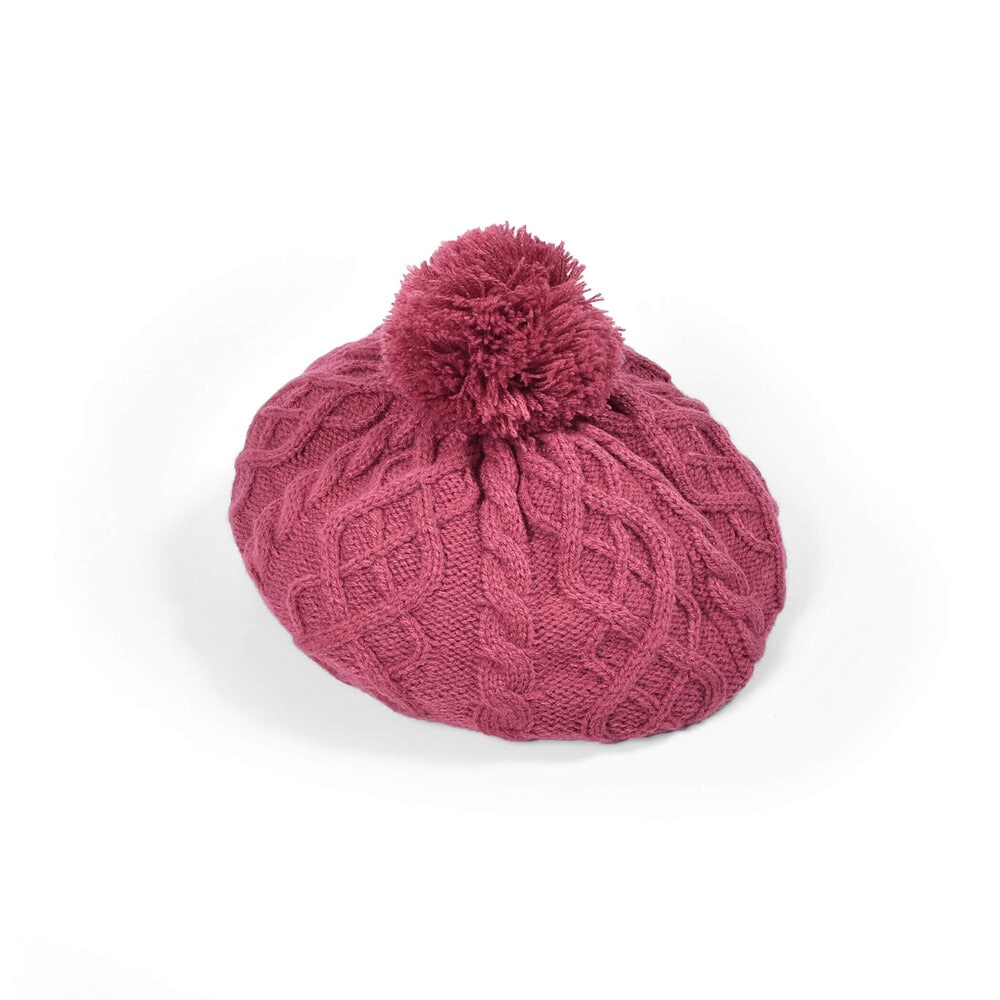 ケーブル編みのデザインが冬らしいニットベレー。