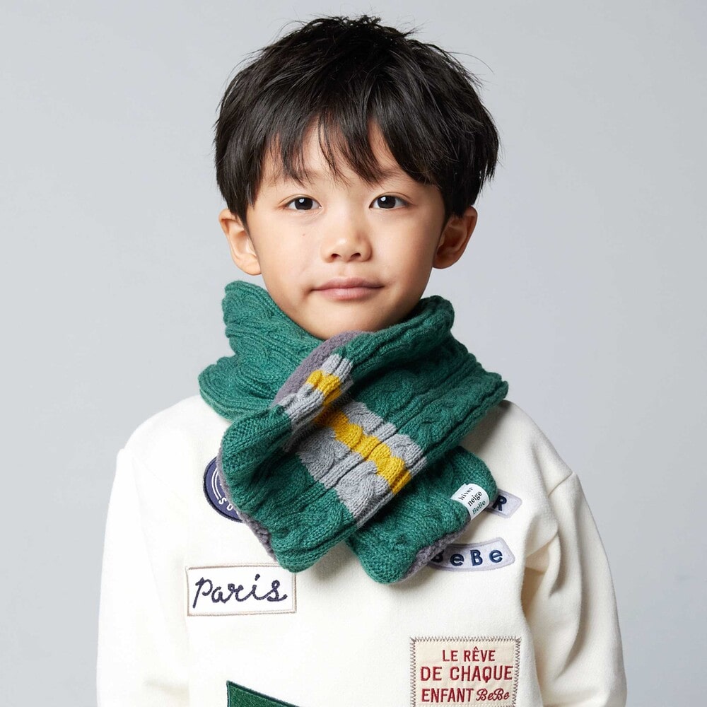 ざっくりと編まれたケーブル編みが温かみのあるニットマフラー。