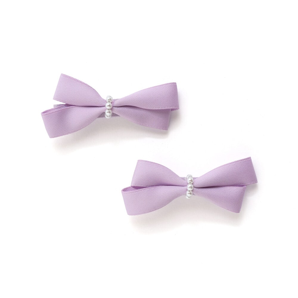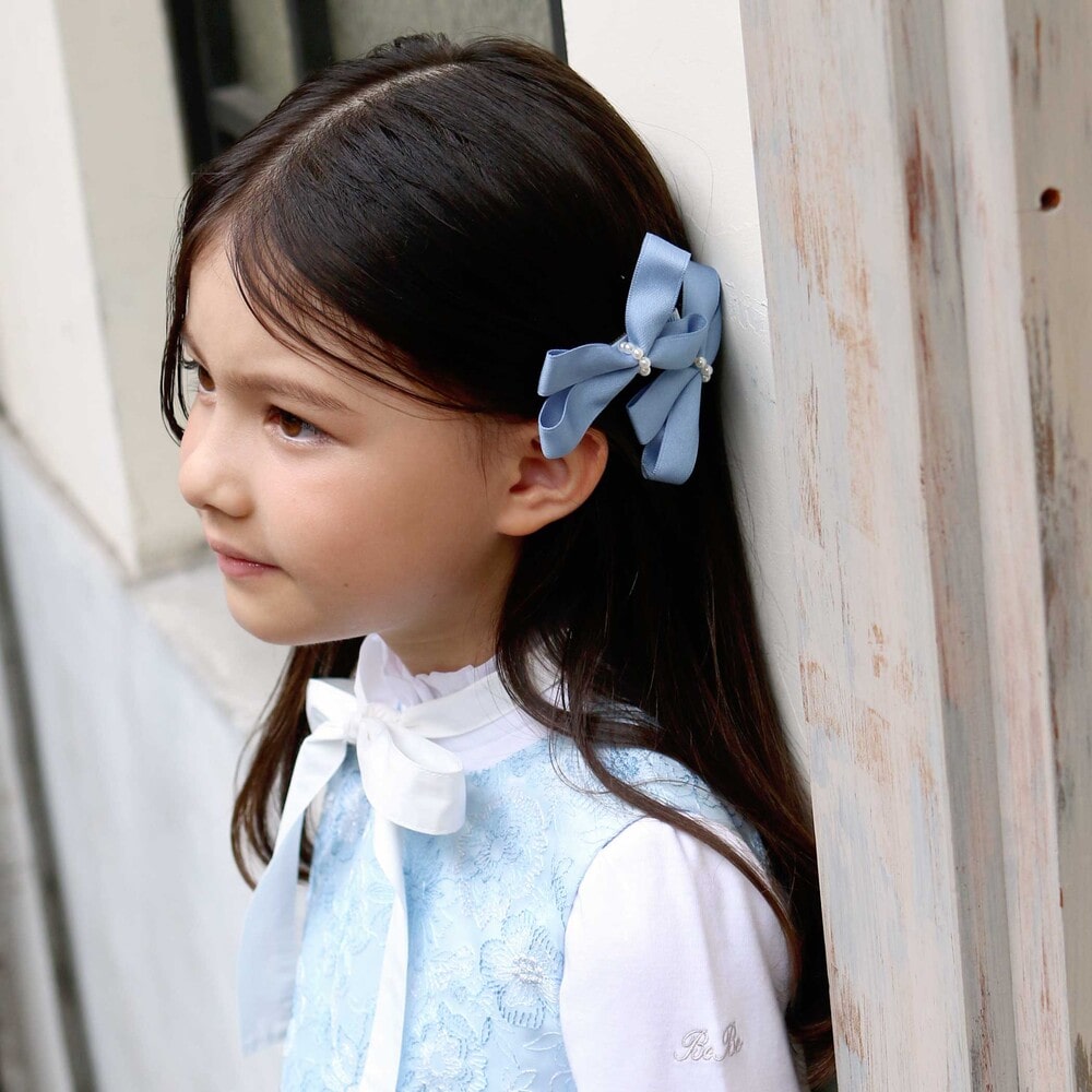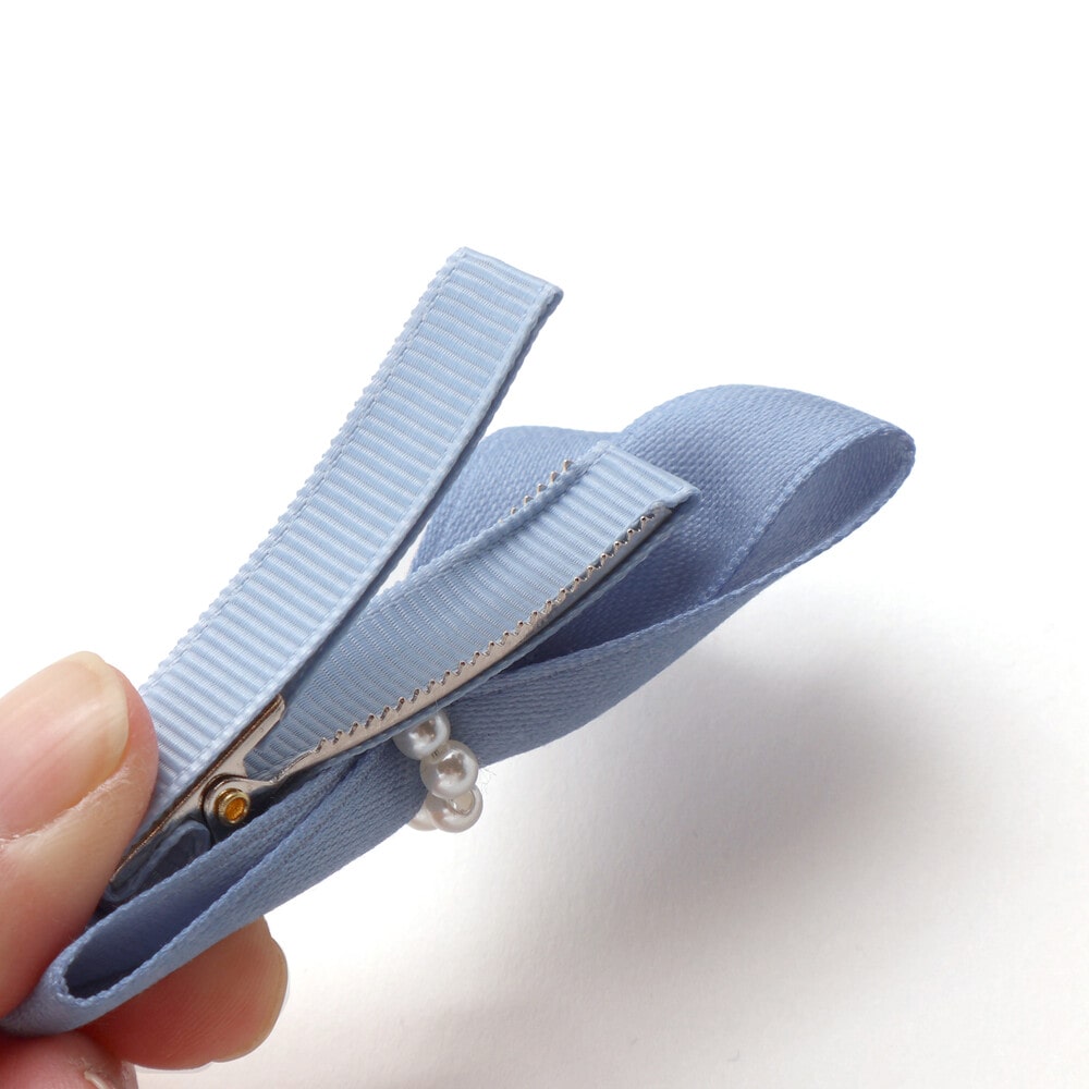 パールのポイント使いがかわいいリボンヘアクリップ。