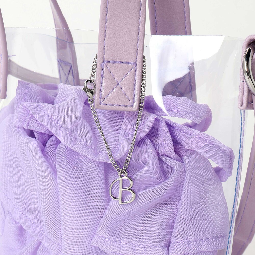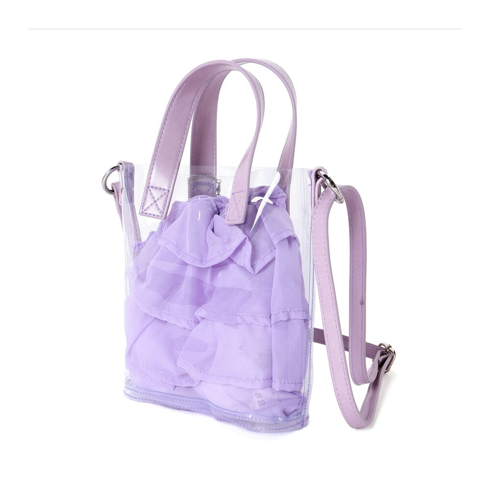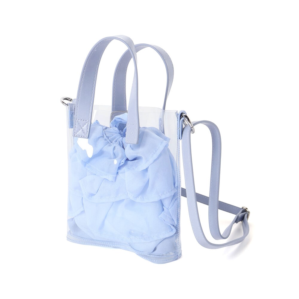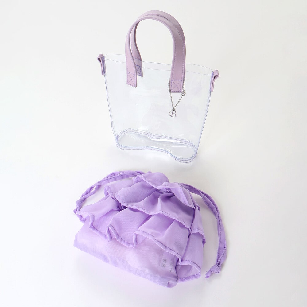 クリアなポシェットと軽やかな質感の巾着のコンビネーションが夏らしい♪