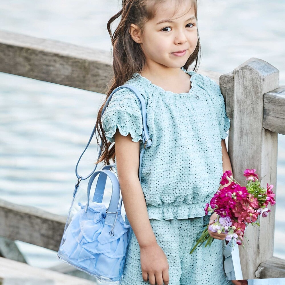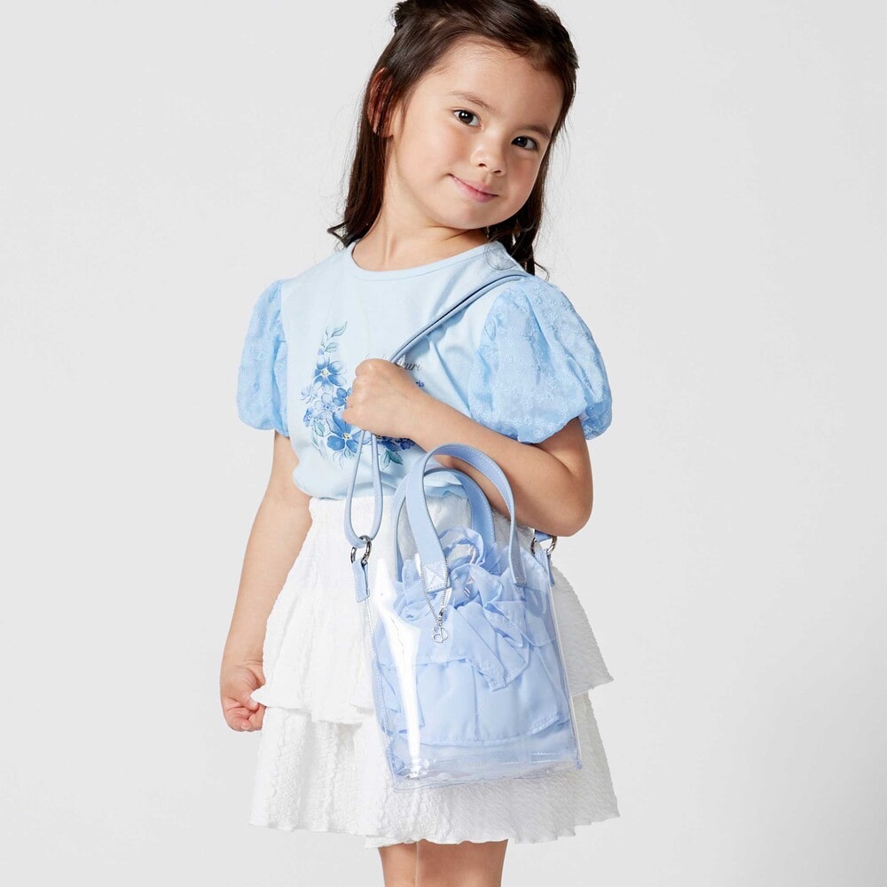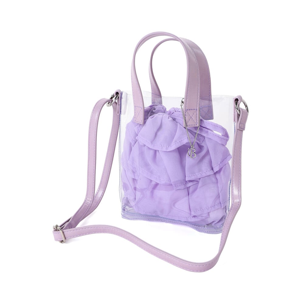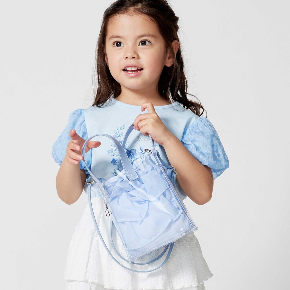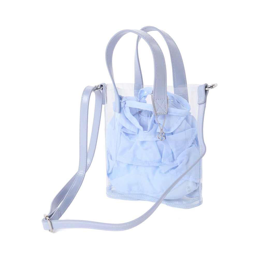 クリアなポシェットと軽やかな質感の巾着のコンビネーションが夏らしい♪