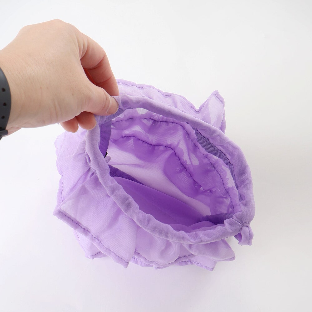 中にはシフォン生地のフリルがたっぷりな巾着がセットになっています。