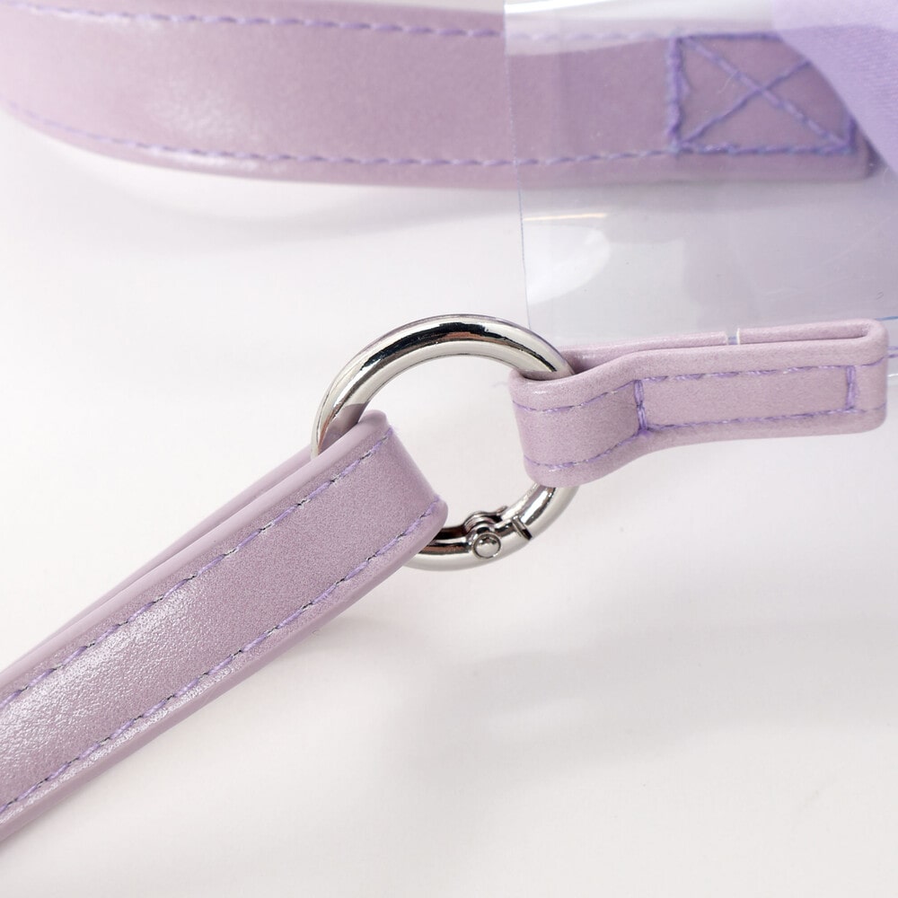 PVCシートのポシェットはフェイクレザーの持ち手とショルダー付き。