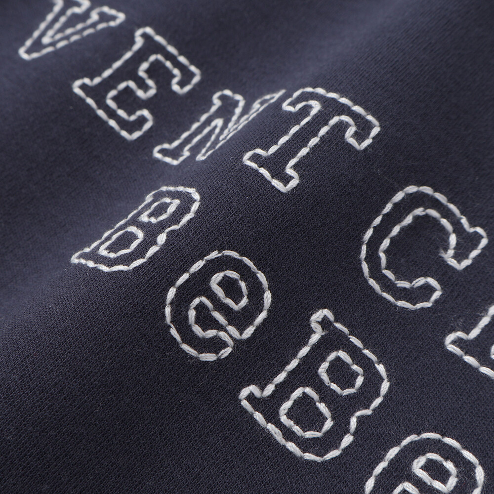 ラグランと胸元のロゴのステッチがどこかレトロで目を引きます。