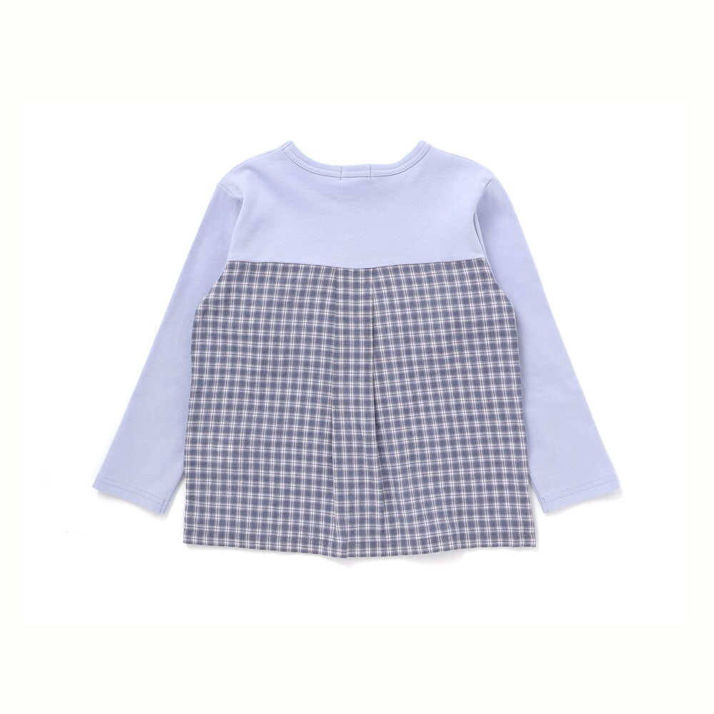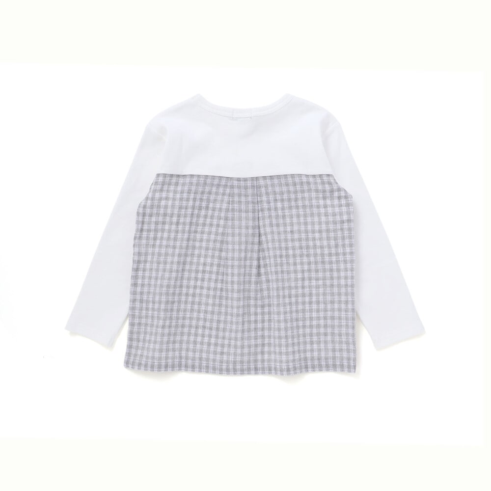 背中にシャツ生地を使用してきちんと感をプラスした長袖Tシャツ。