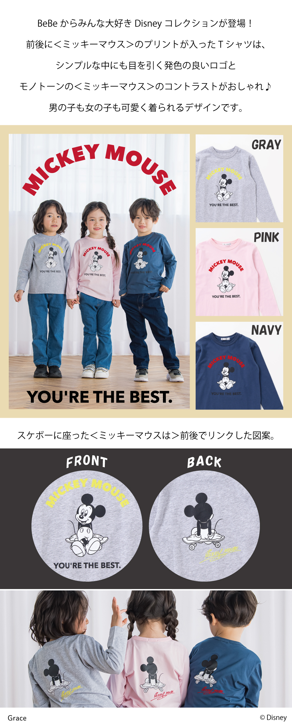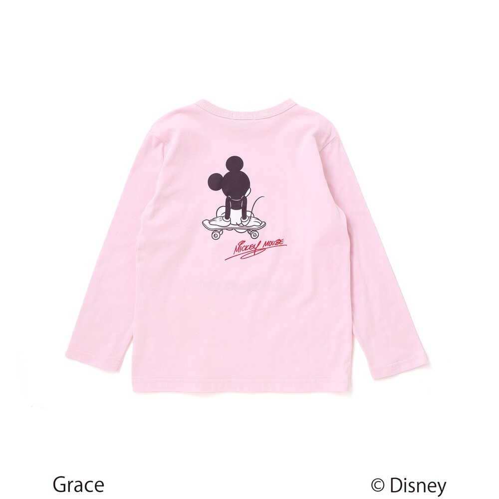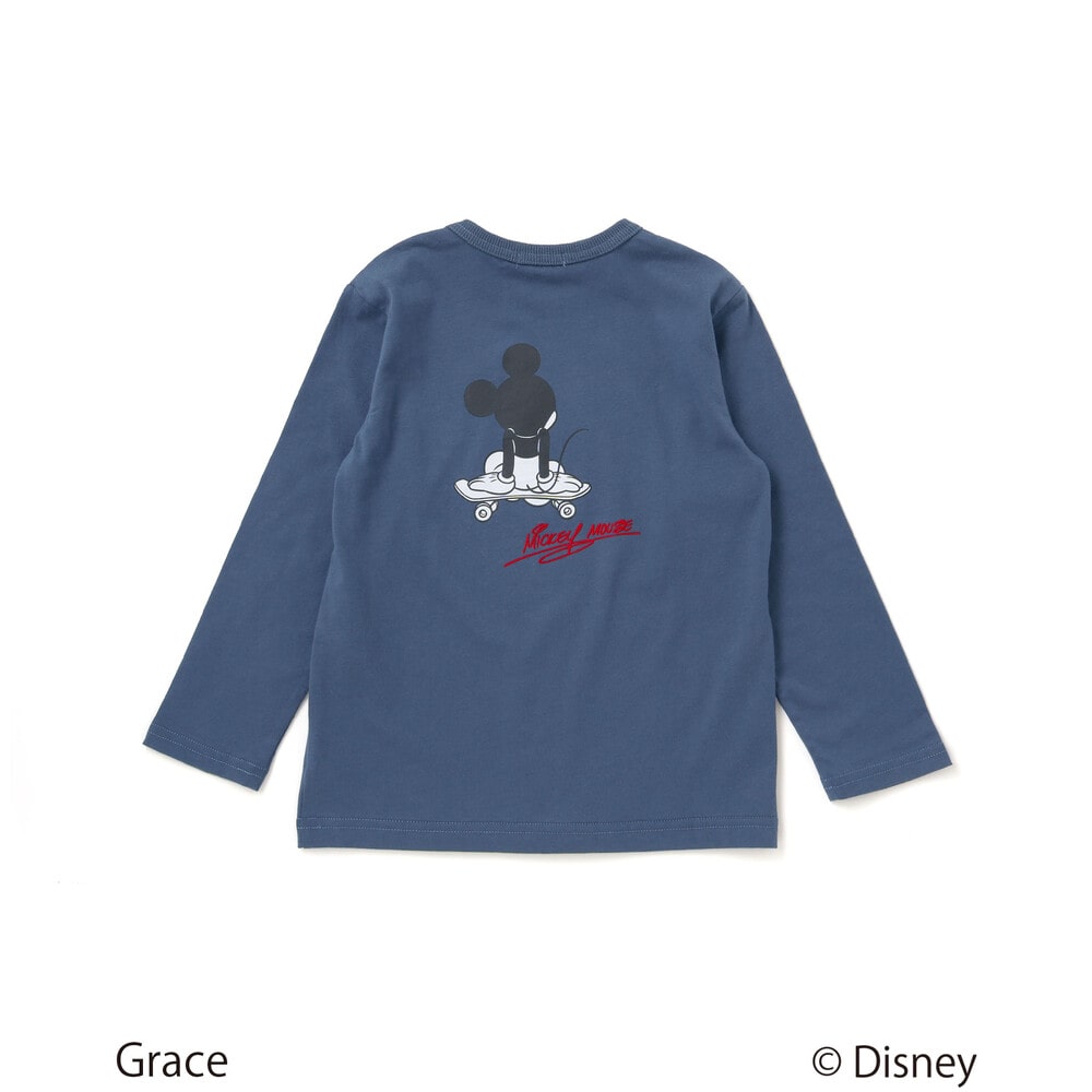 フロントには正面向き、バックには後ろ向きの<ミッキーマウス>がプリントされた遊び心あるデザイン。