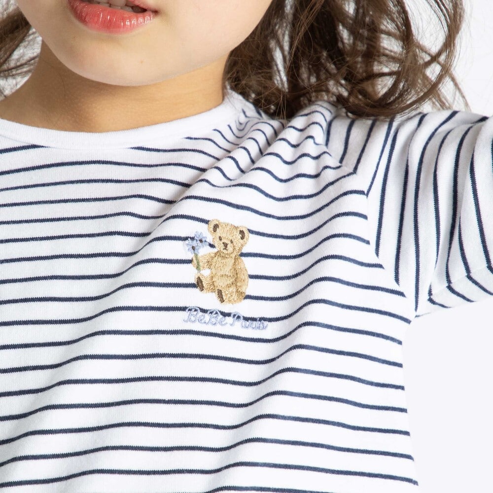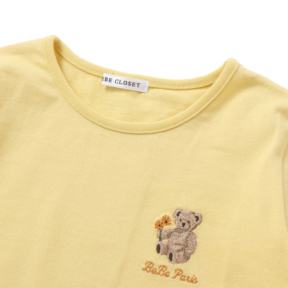 ワンポイントのくま刺しゅうが可愛らしい長袖Tシャツ。