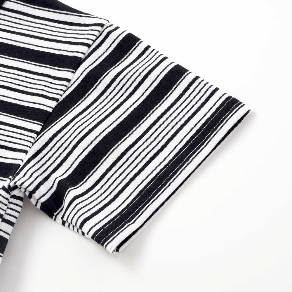 オフホワイトベースにブラックのラインと、モノトーンのプリントで大人っぽく。