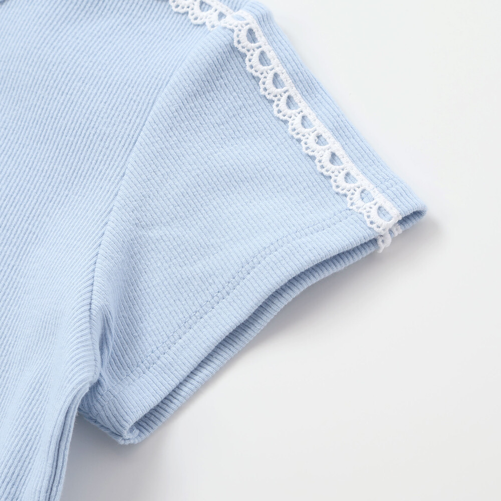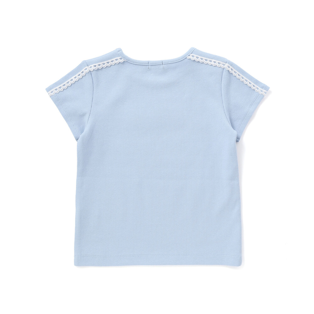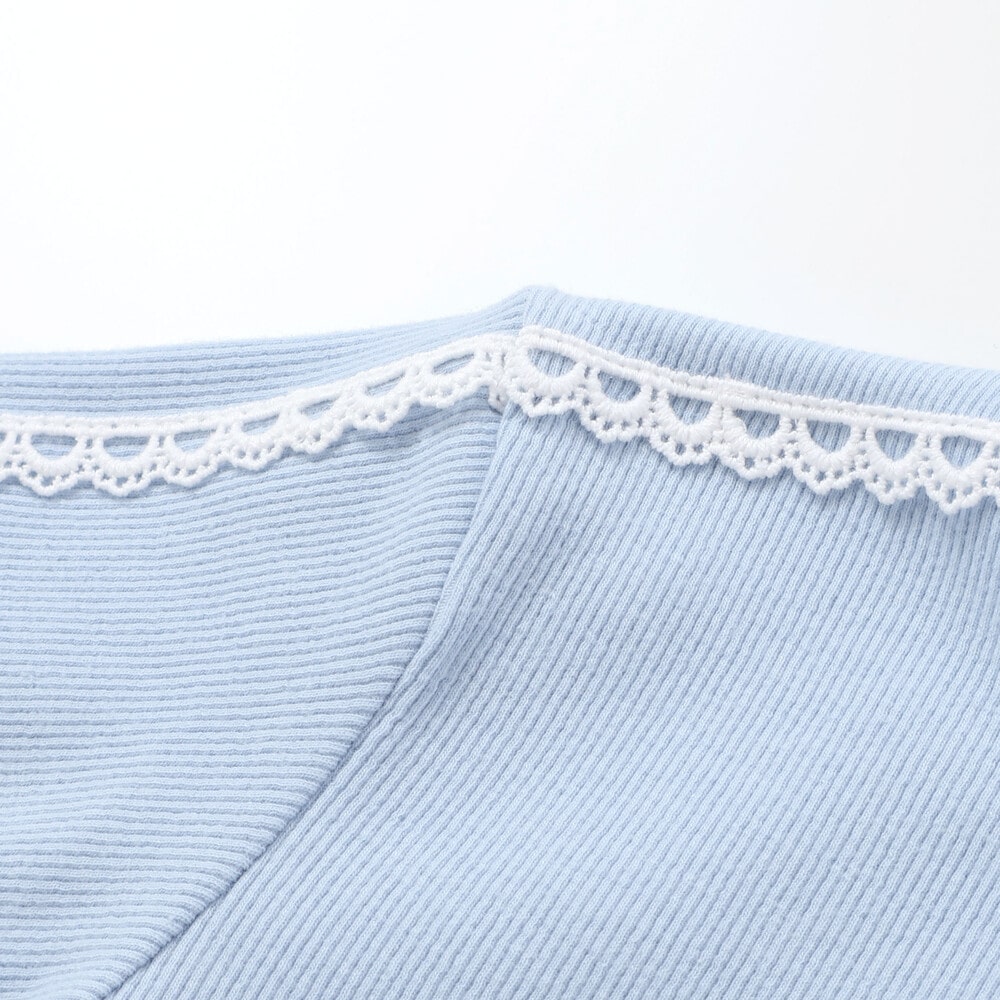 肩から袖のラインにはレースでラインを入れてガーリーなアクセントに。