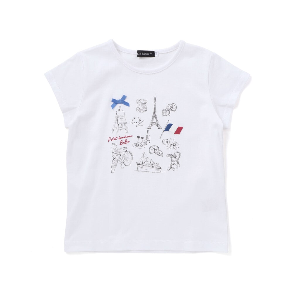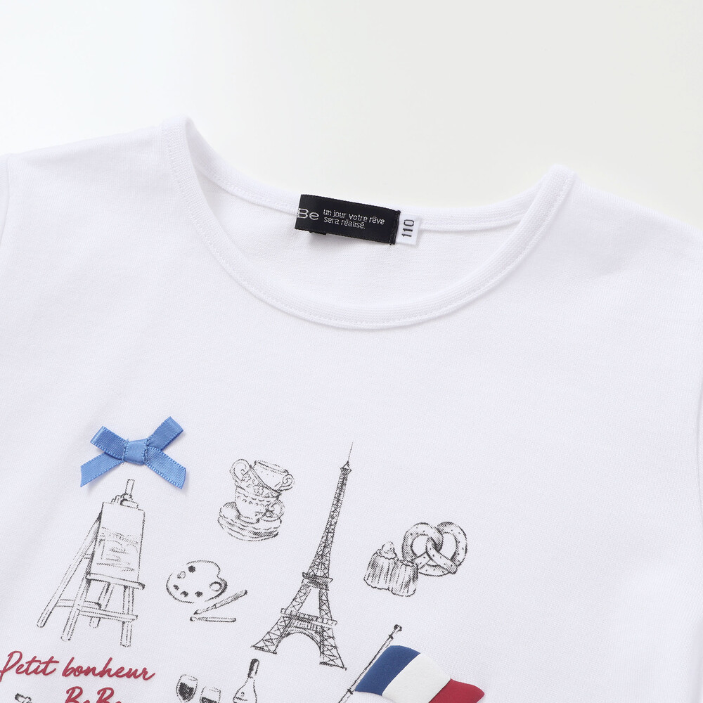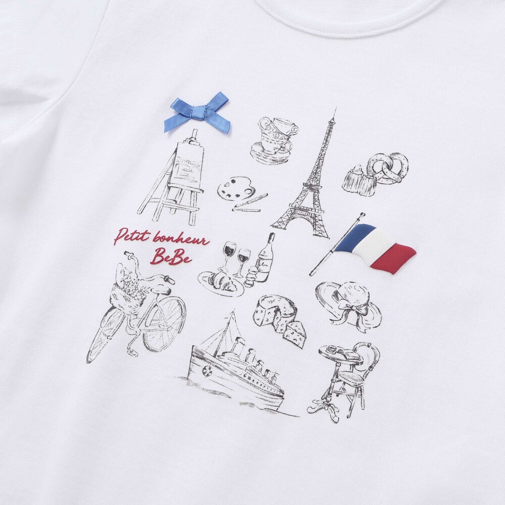 パリの街を散策する女の子をイメージしたおでかけモチーフプリントのTシャツ。