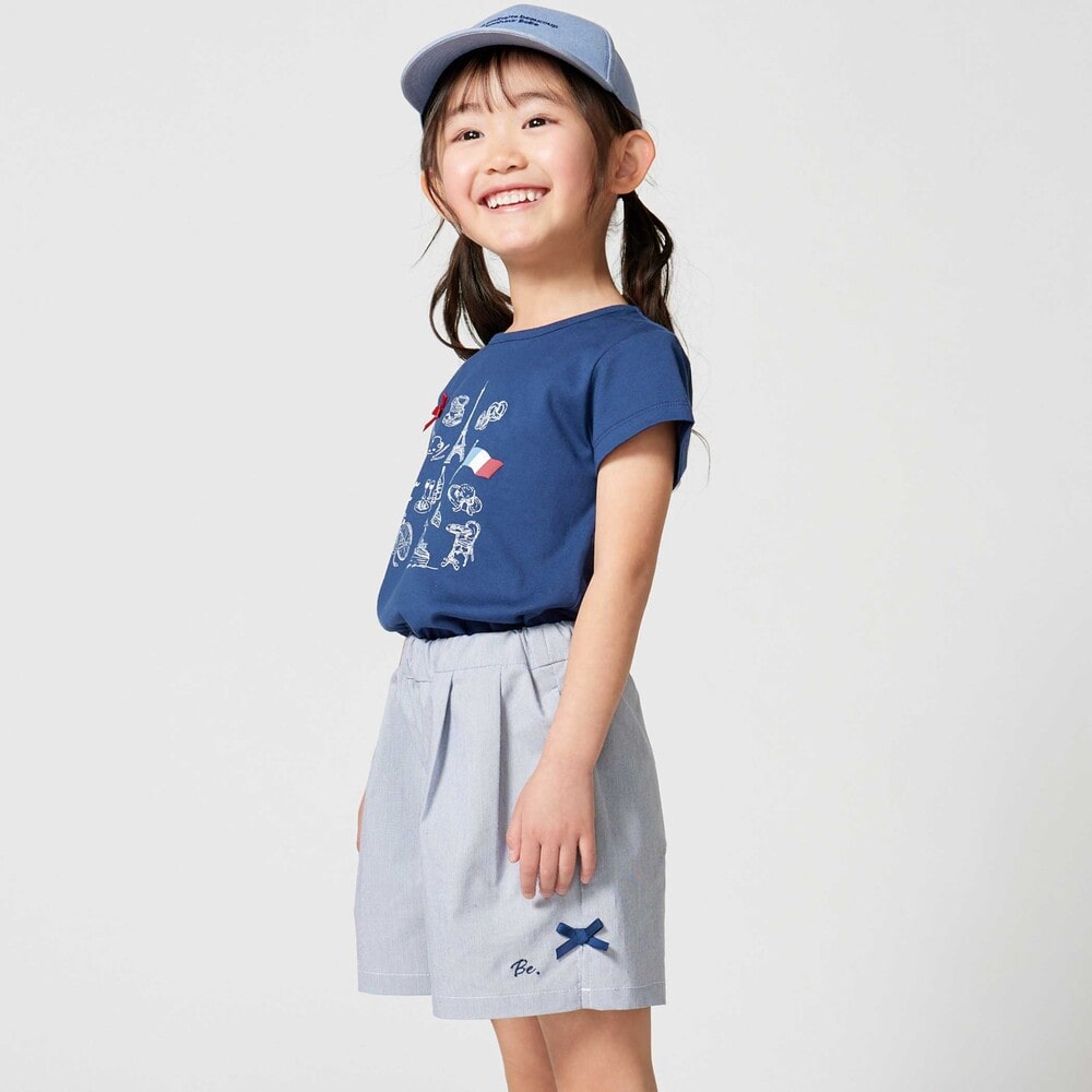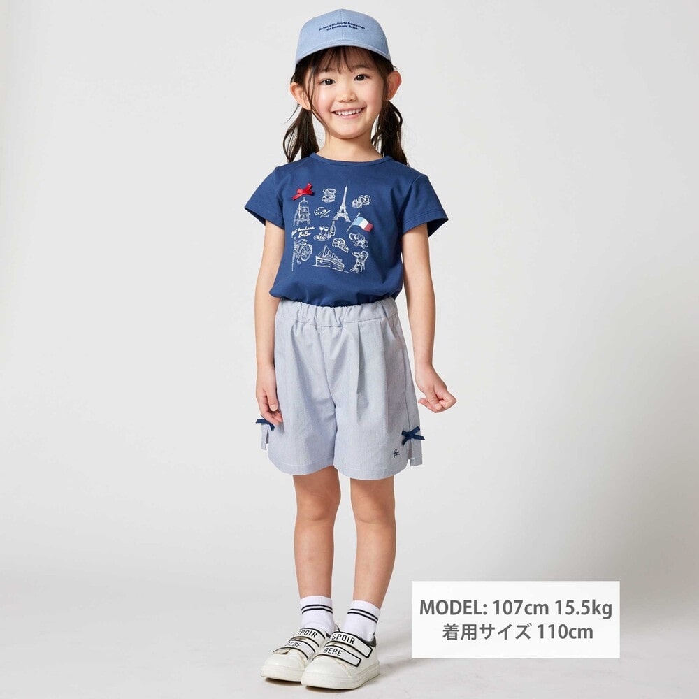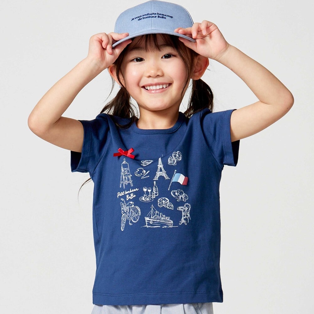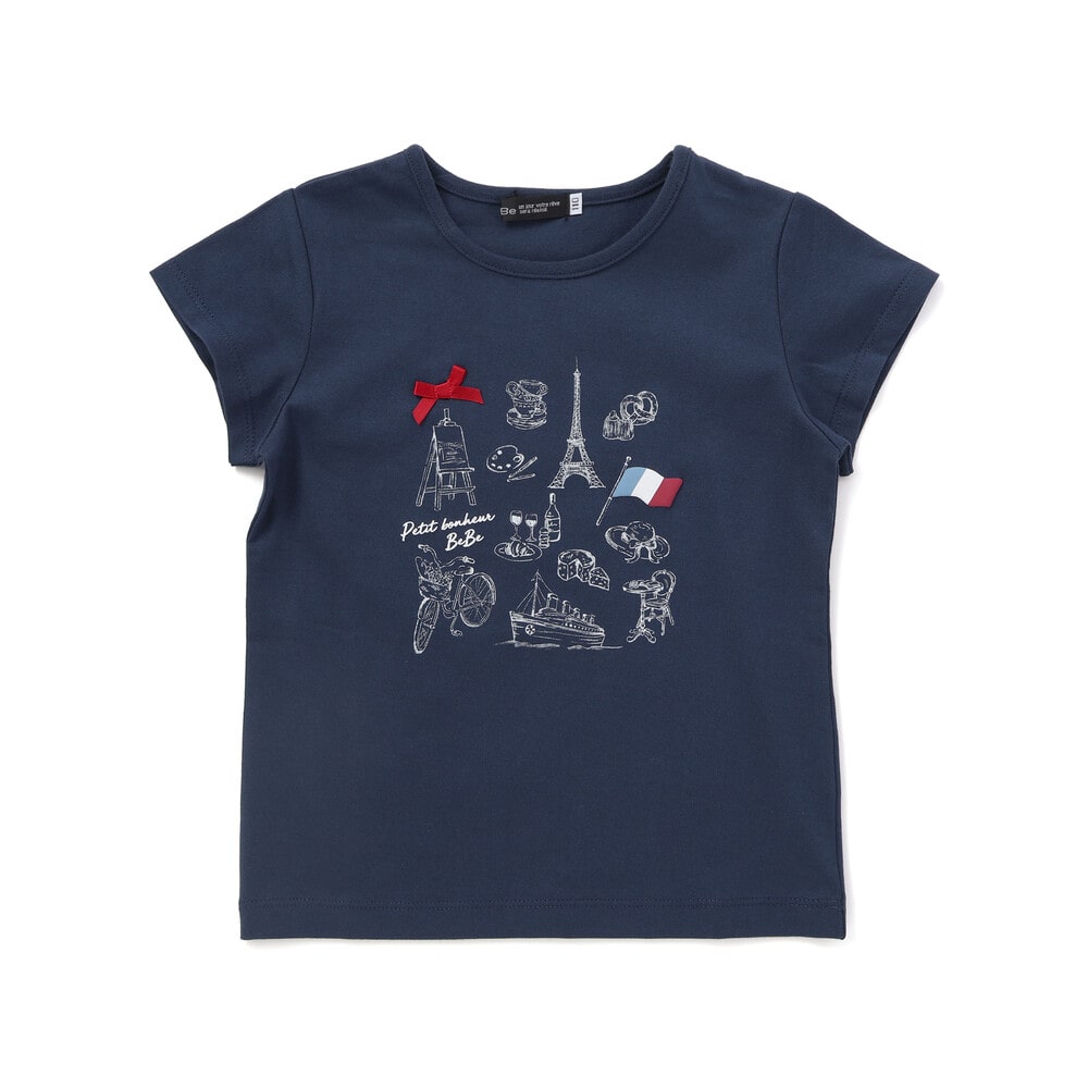 パリの街を散策する女の子をイメージしたおでかけモチーフプリントのTシャツ。