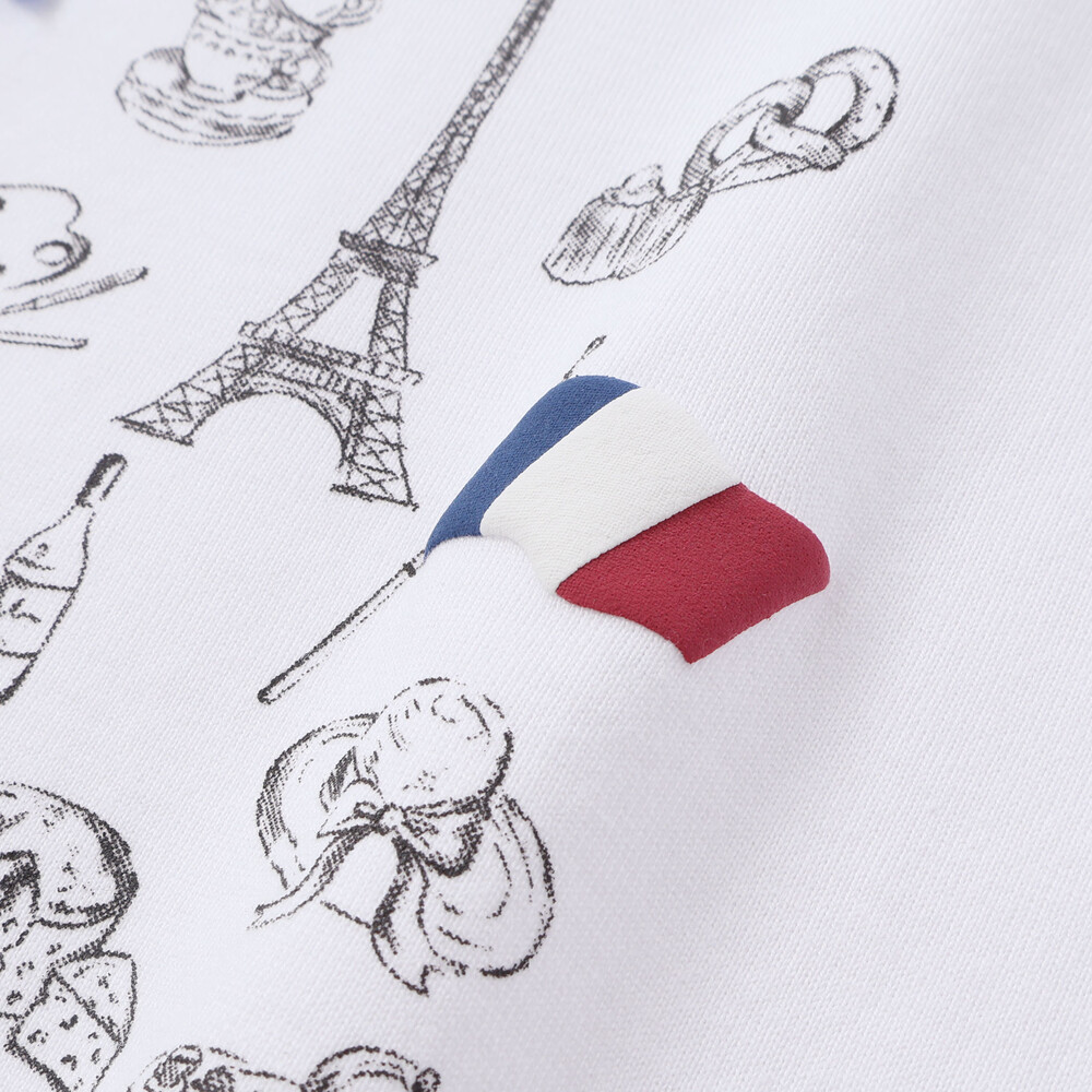 フランス国旗とロゴ部分は発泡プリントでぷっくりとした立体感。