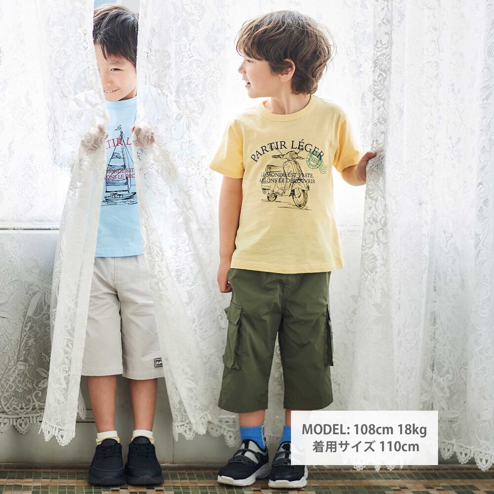 マンスリーテーマのビラ・ケム橋から見える乗り物をプリントした半袖Tシャツ。