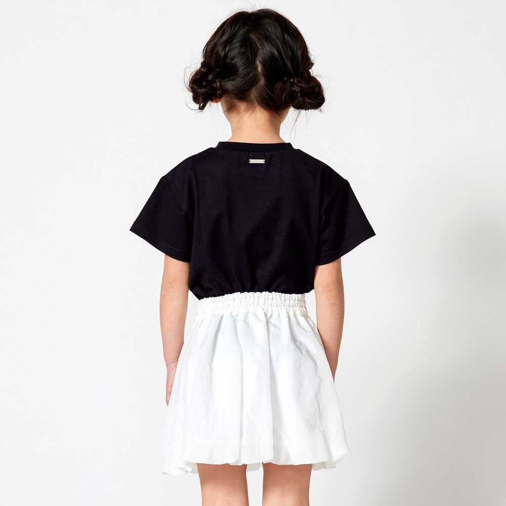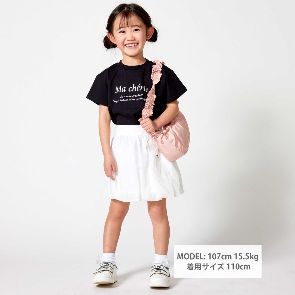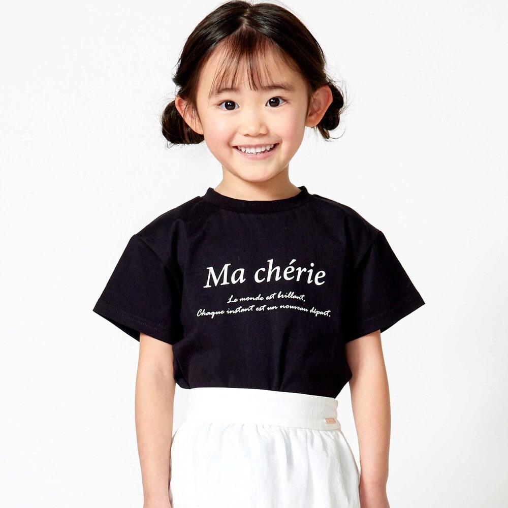 身幅にちょっとゆとりを持たせたワイドシルエットがリラックス感ある女の子用ロゴTシャツ。