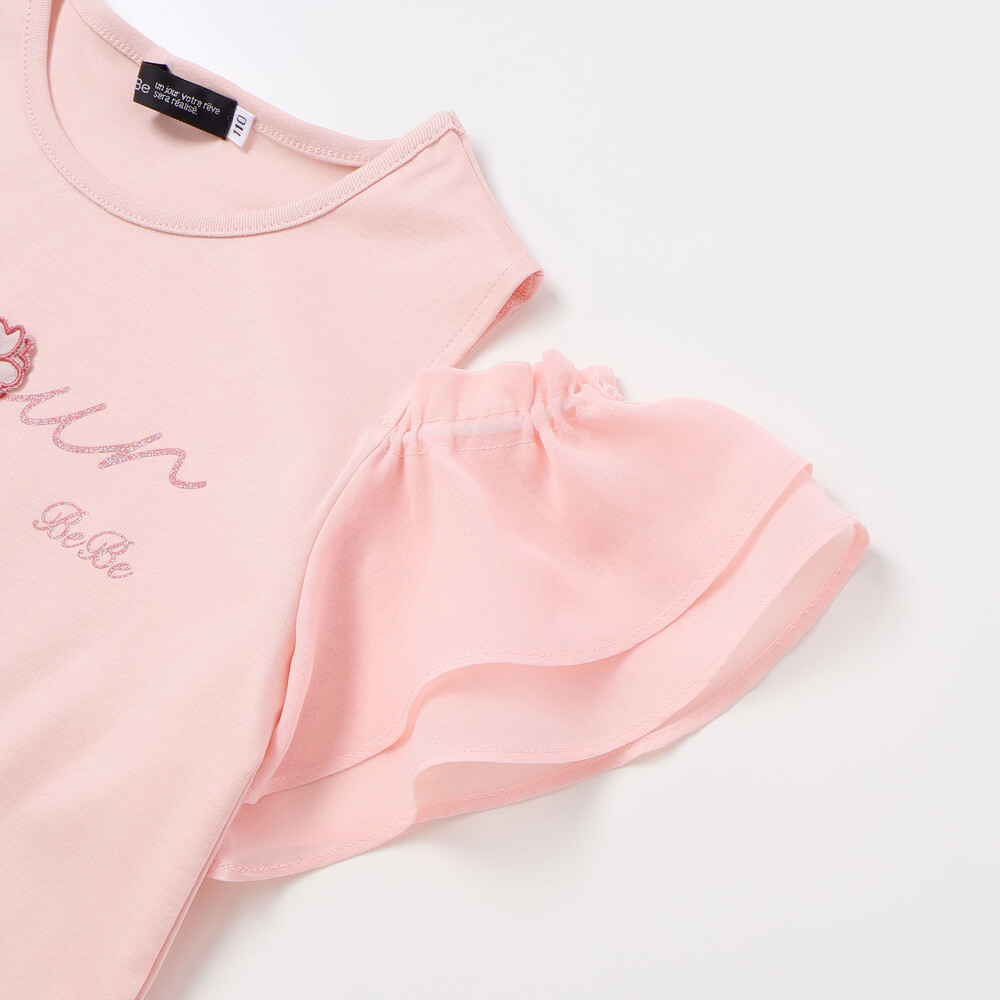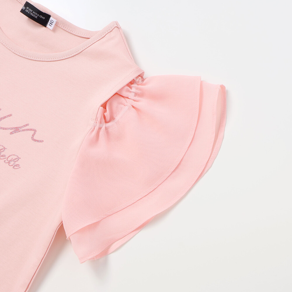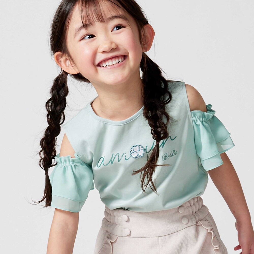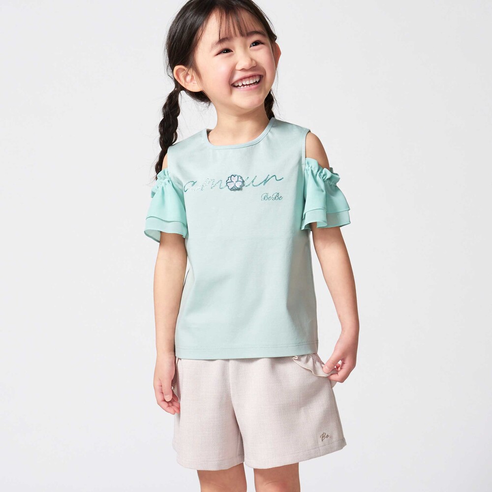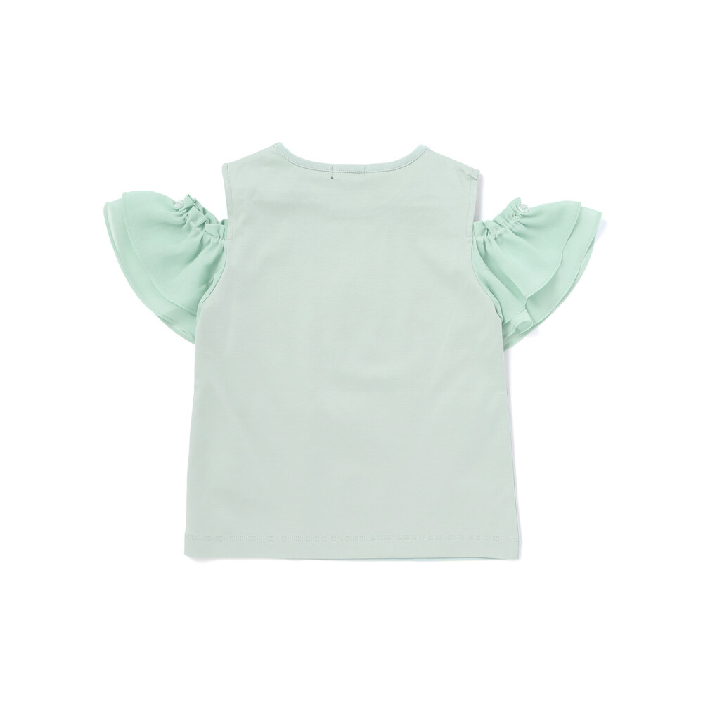 フレアスリーブと肩開きデザインの2通りで着用可能な半袖Tシャツ。