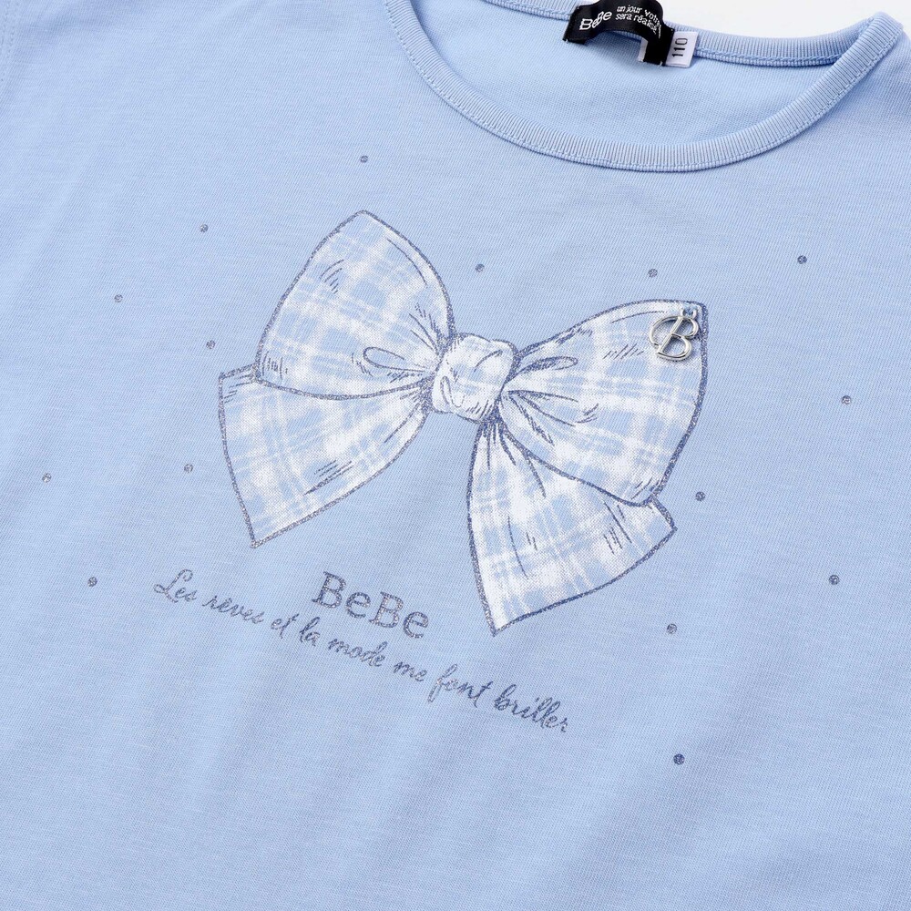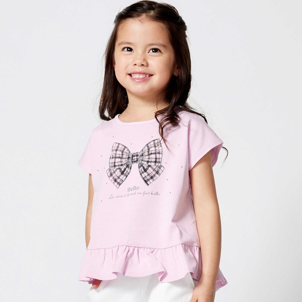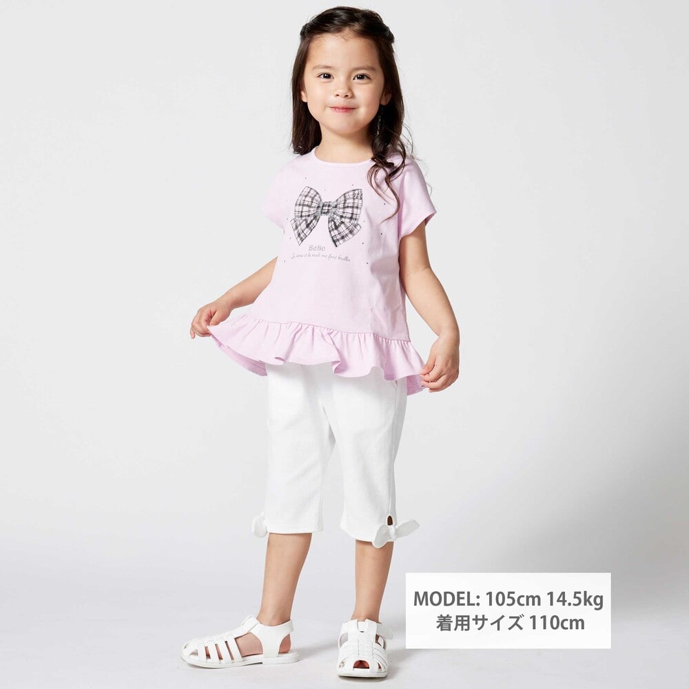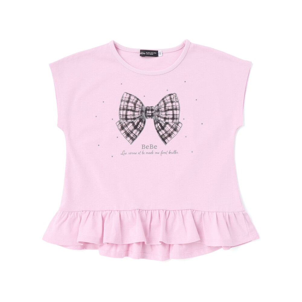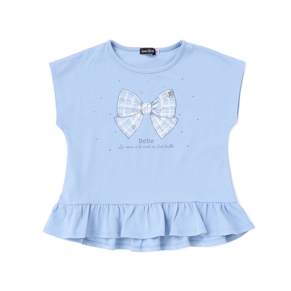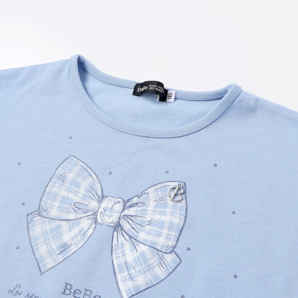 大きなリボンのプリントがフェミニンなデザインの半袖Tシャツ。