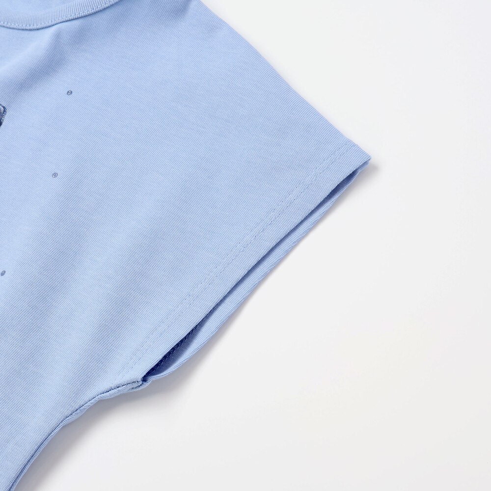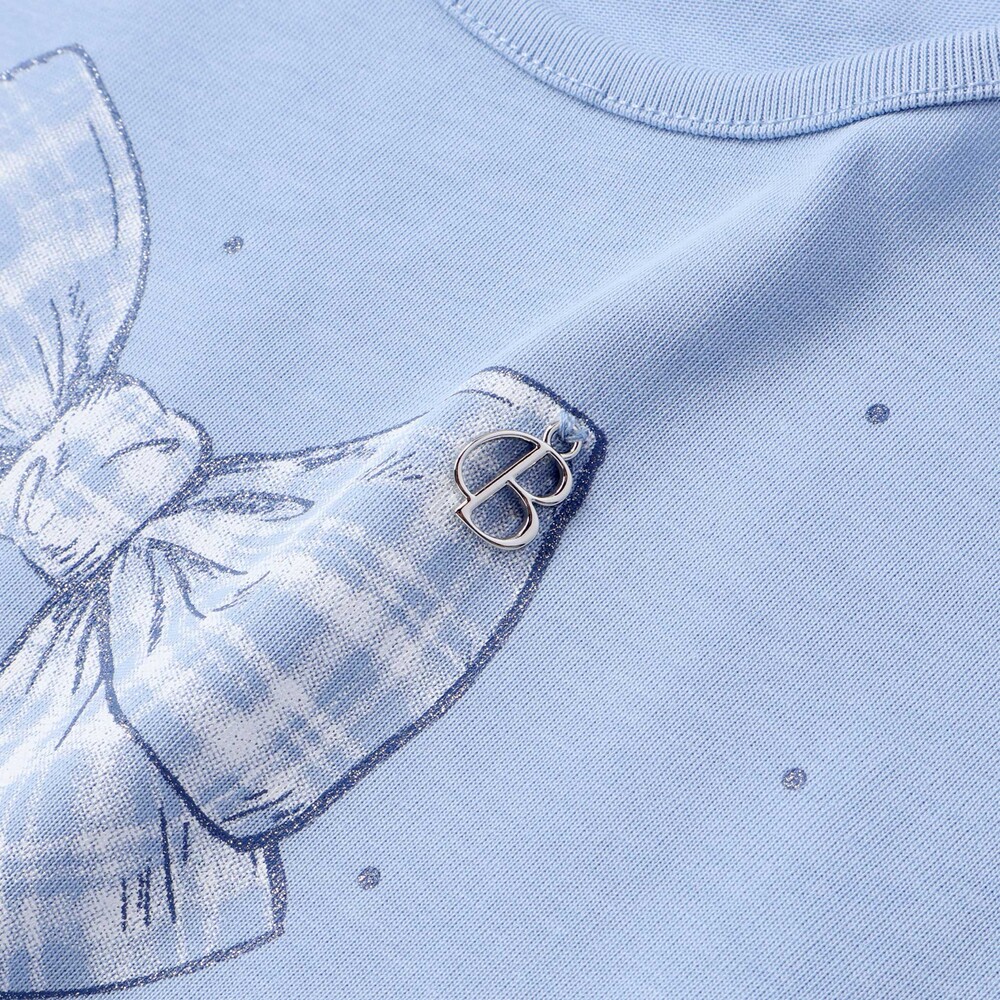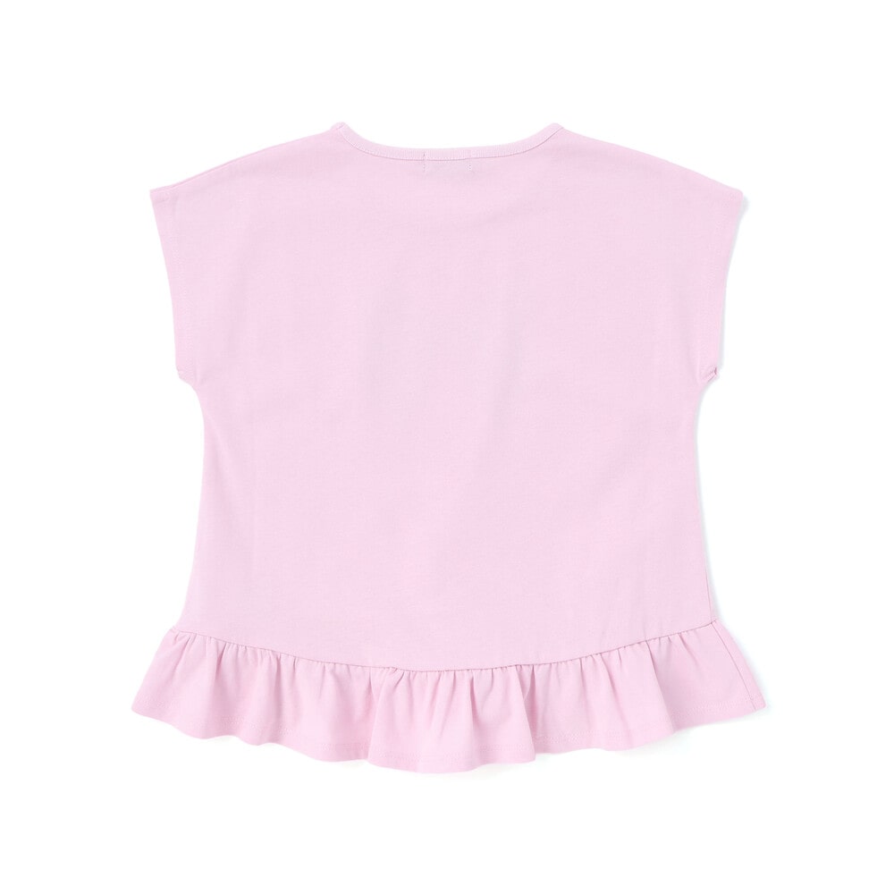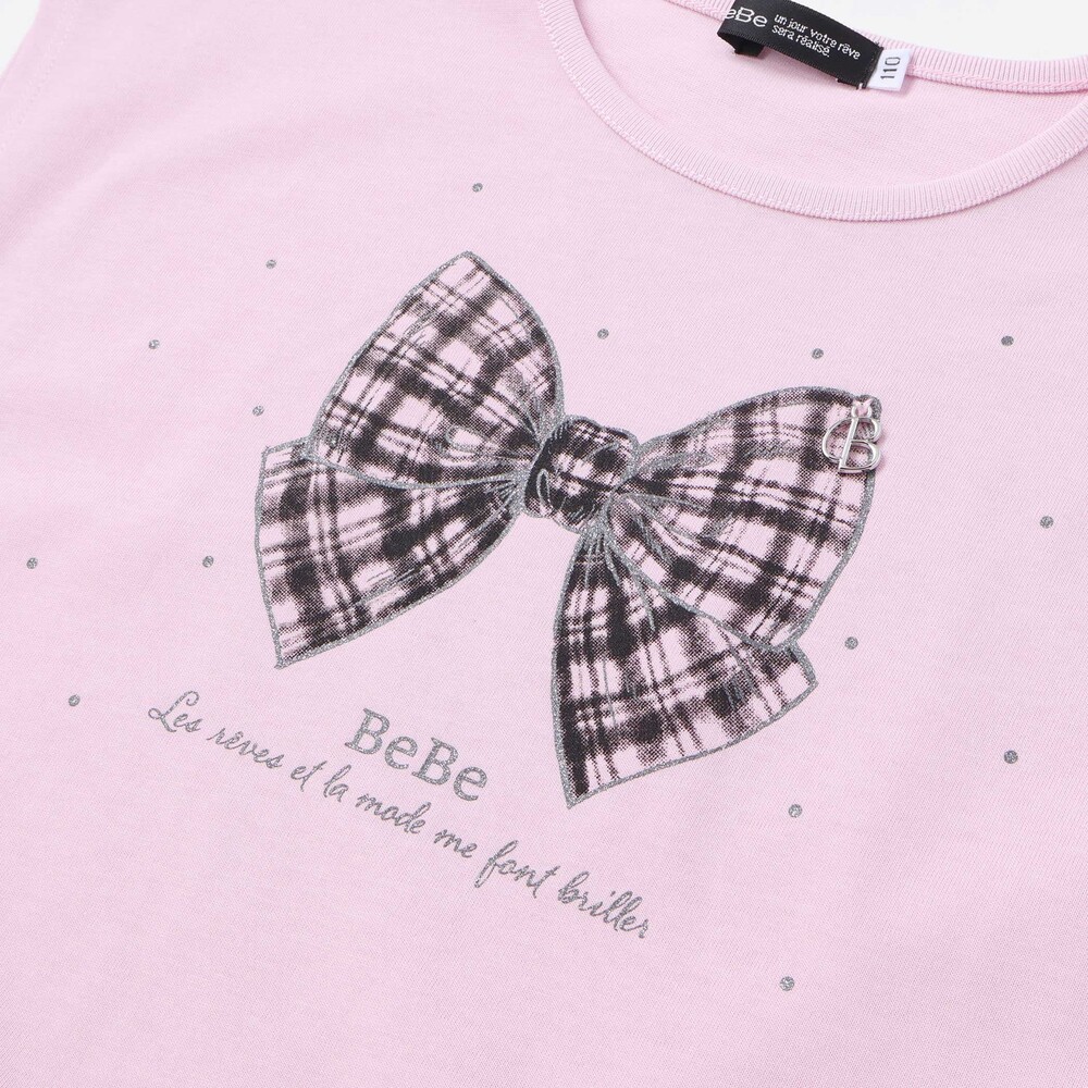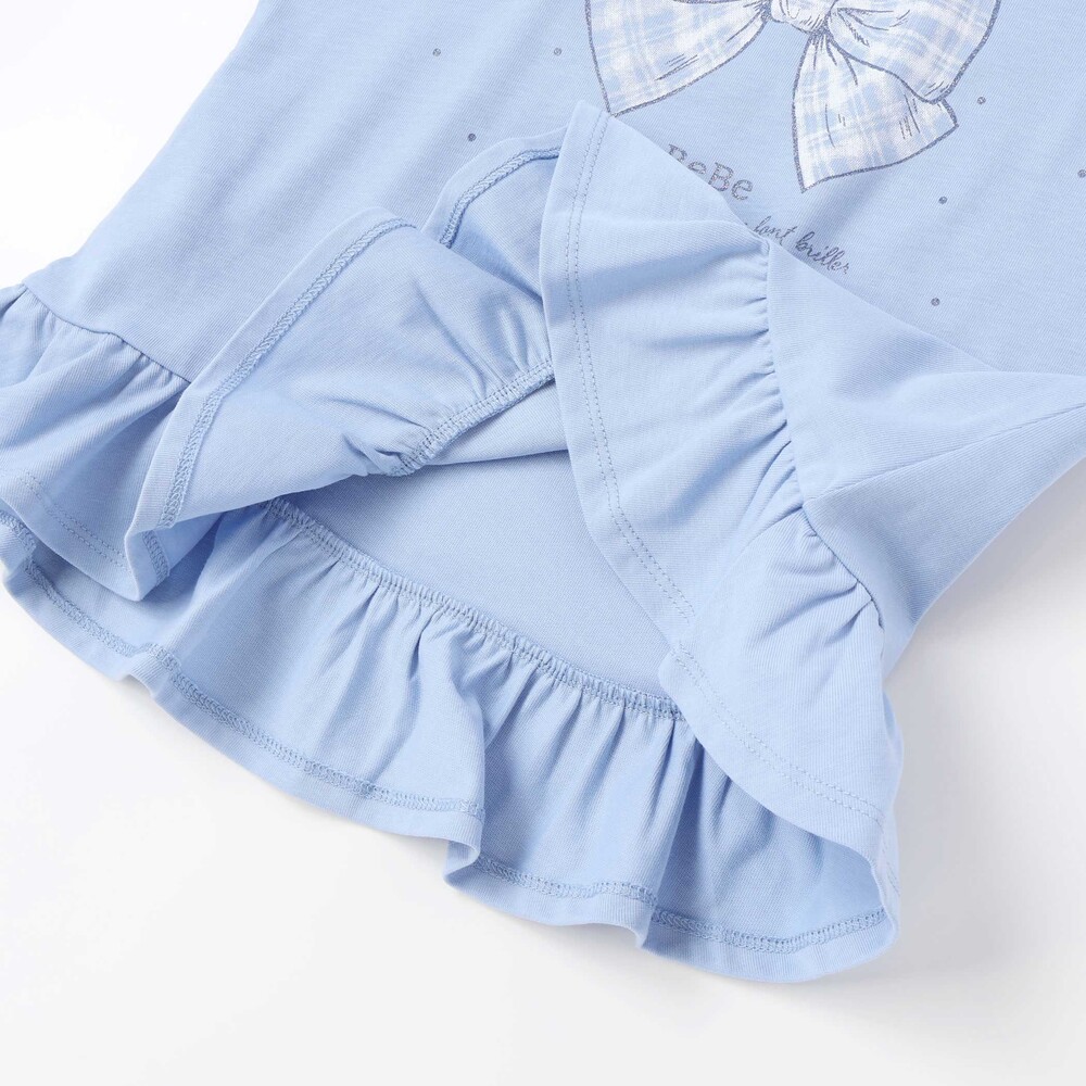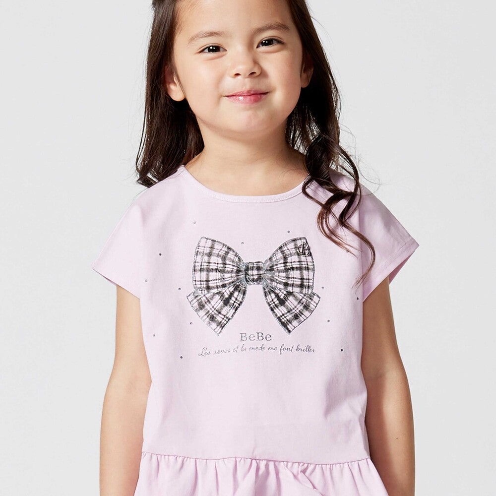 大きなリボンのプリントがフェミニンなデザインの半袖Tシャツ。