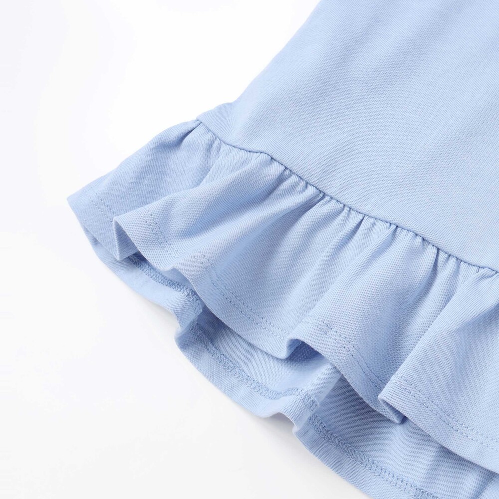 裾は幅広のフリルで前後の着丈に差をつけたヘムラインに。