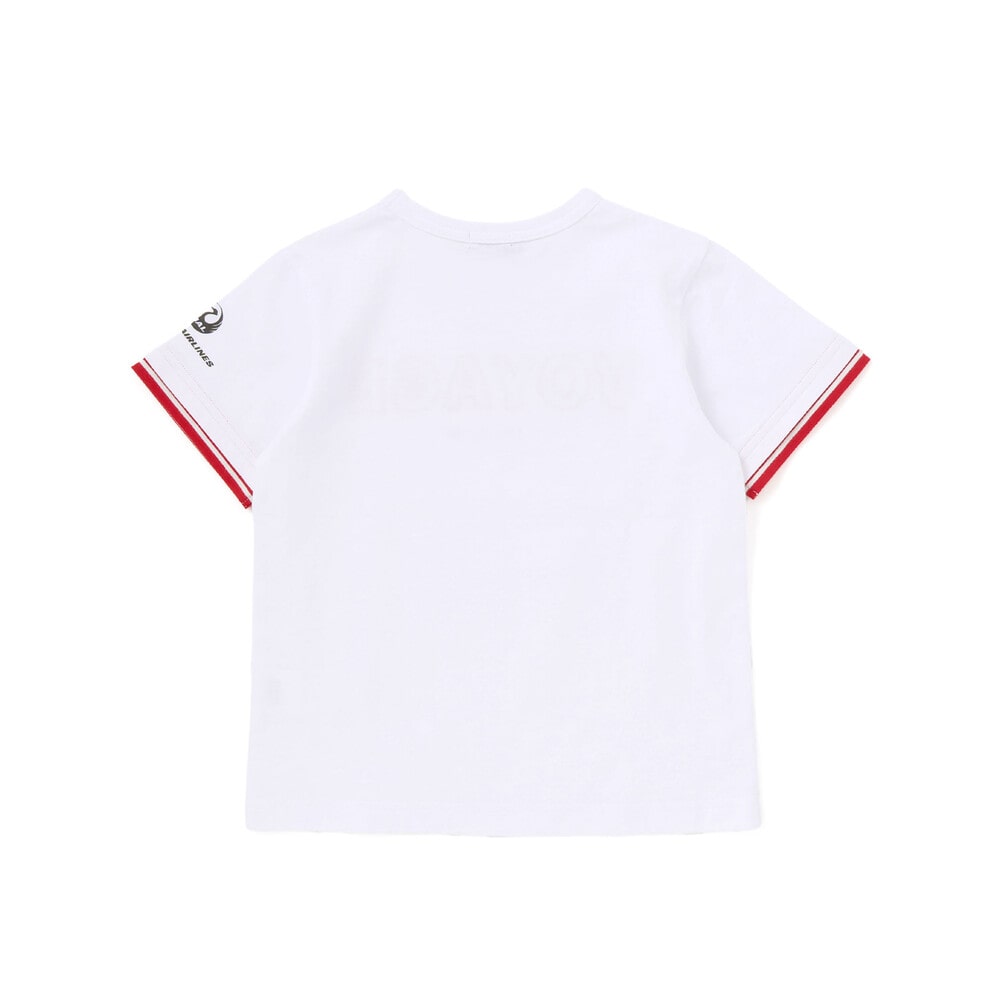 ロゴ部分と袖の切り替え部分にはボーダーの生地を使い、爽やかなデザインポイントに