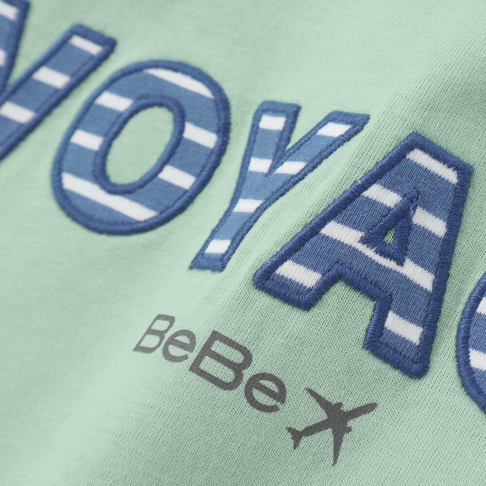 「旅」を意味する「VOYAGE」のロゴをパッチ刺しゅうで胸元に大きく入れました。