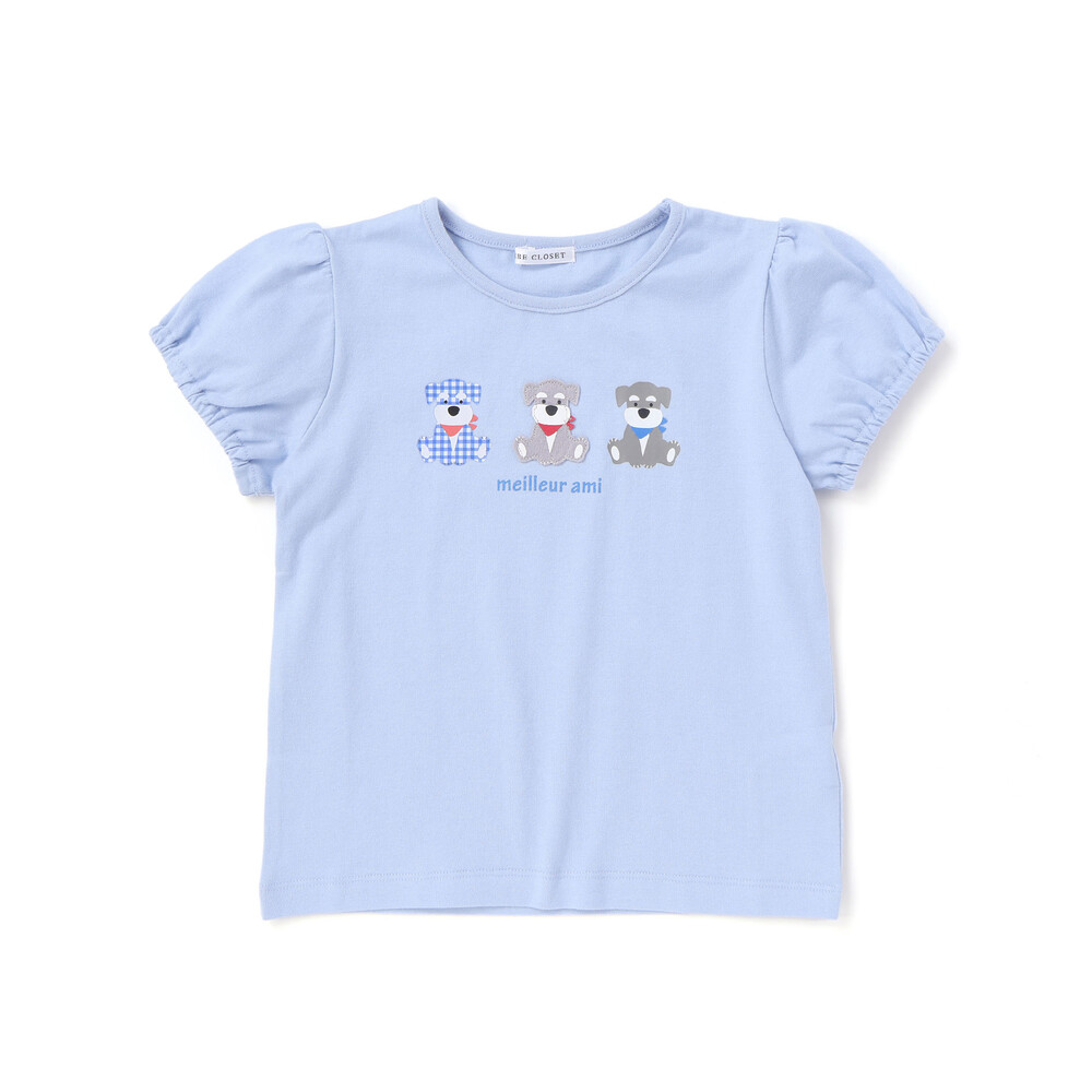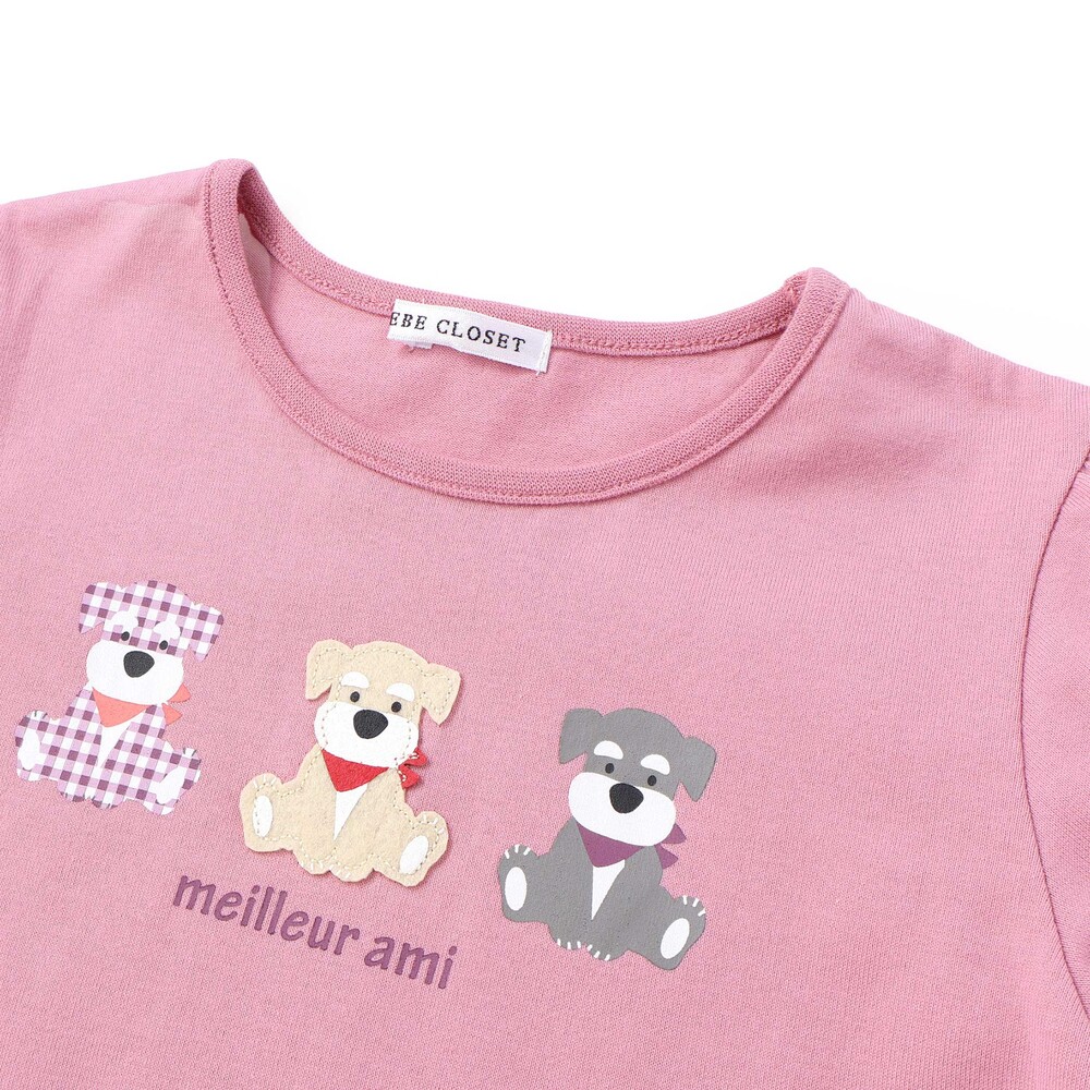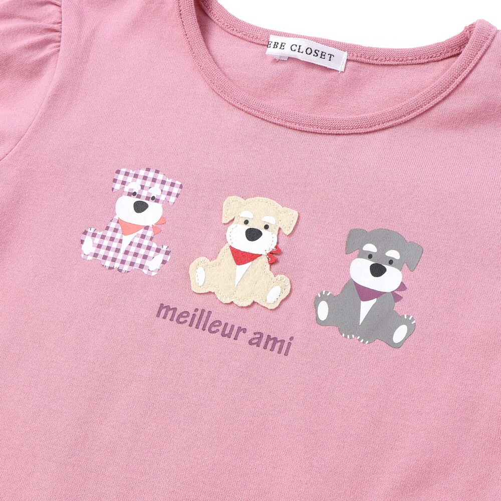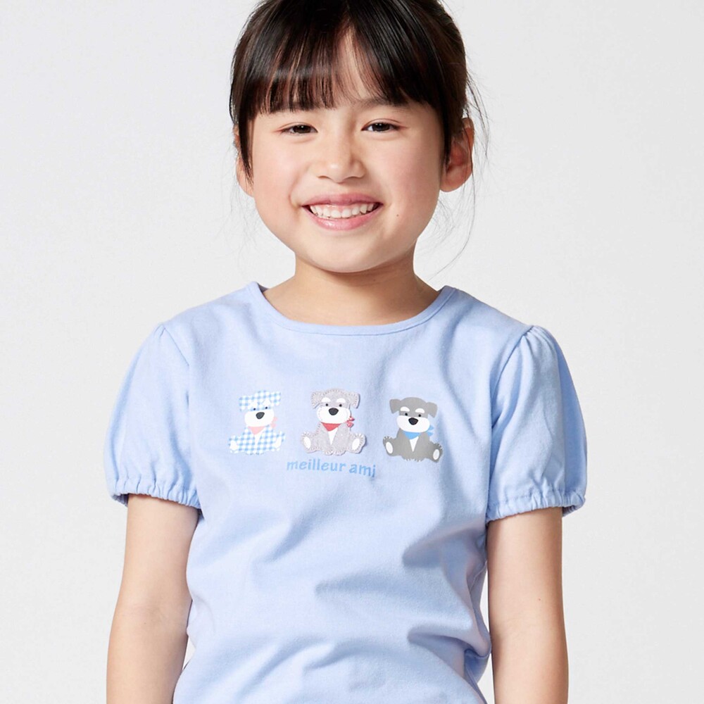 仲良し3匹のこいぬのプリントが可愛い女の子用半袖Tシャツ。