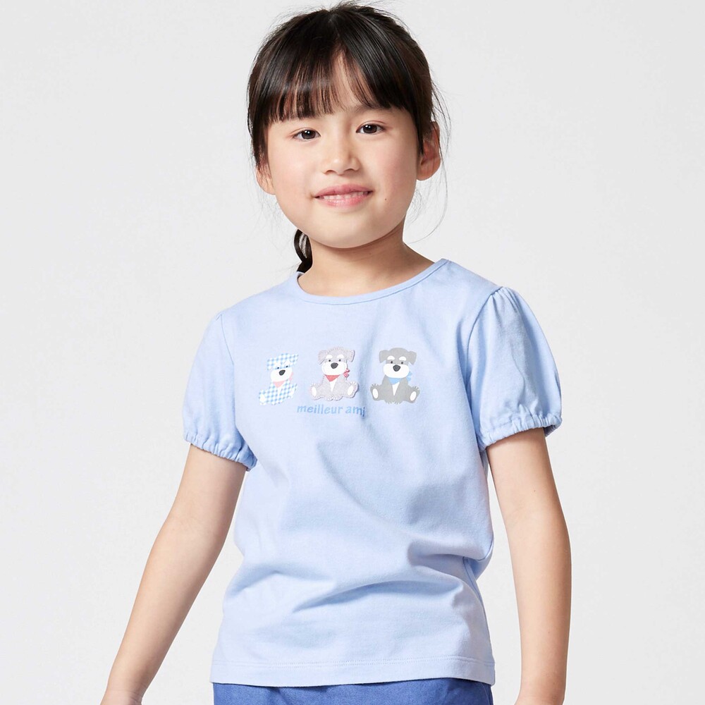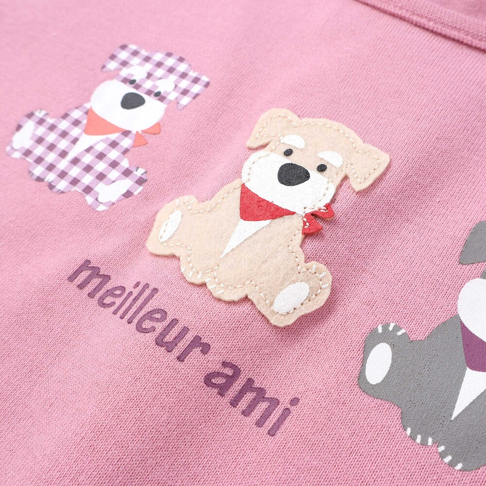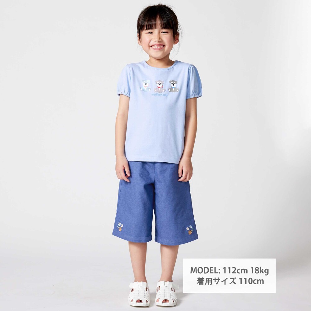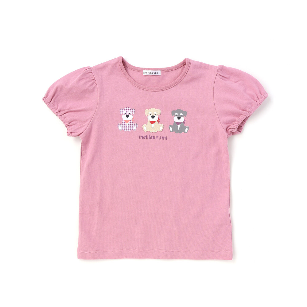 仲良し3匹のこいぬのプリントが可愛い女の子用半袖Tシャツ。