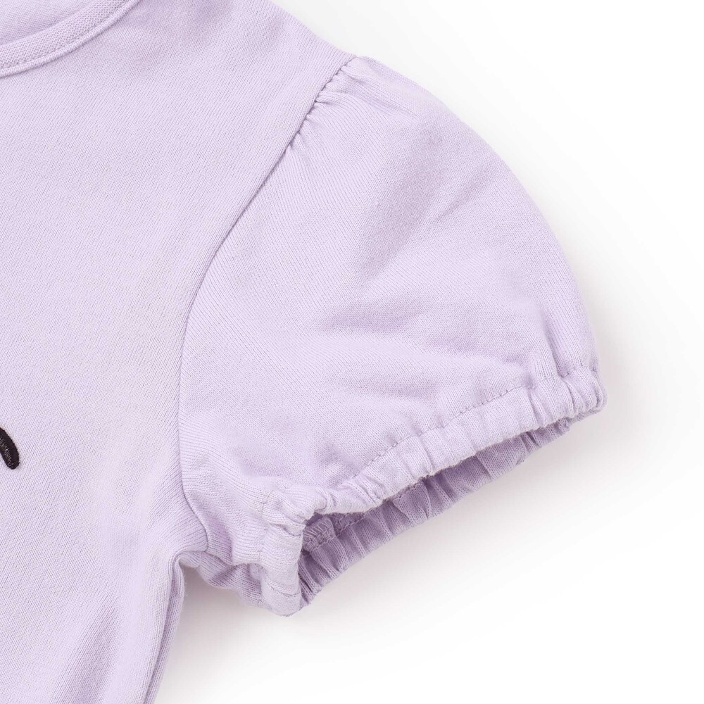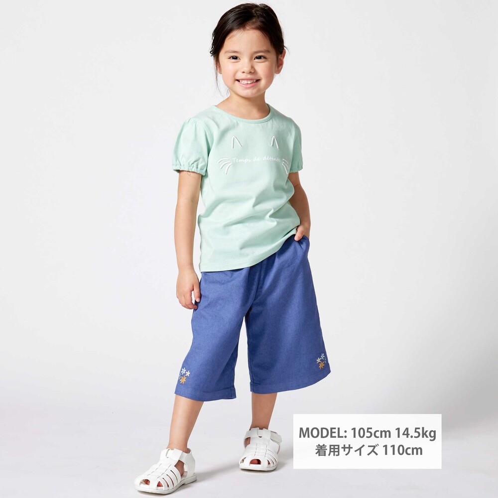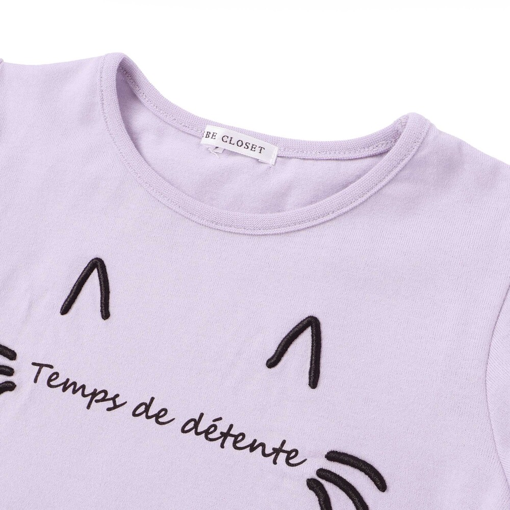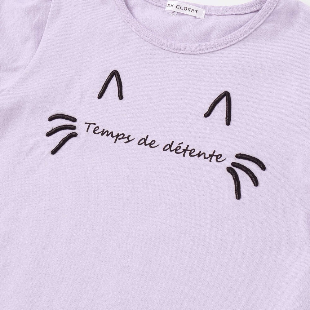 ネコ耳のシルエットを刺しゅうで表現した女の子用半袖Tシャツ。