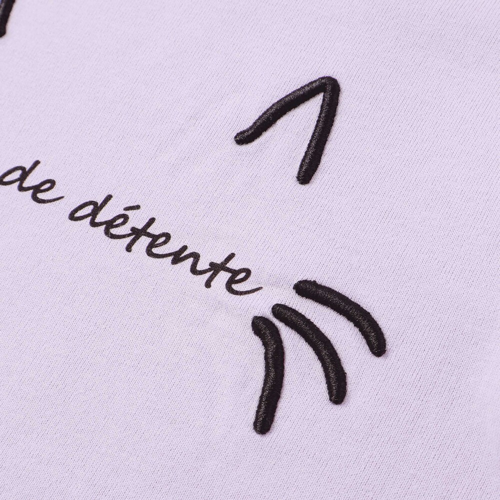 ネコの耳とおひげをふくらみのある立体刺しゅうで胸元に大きく入れました。