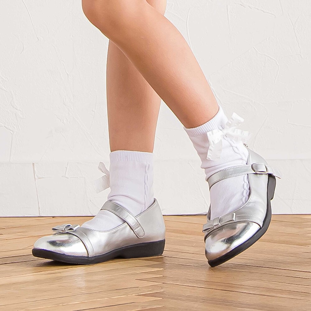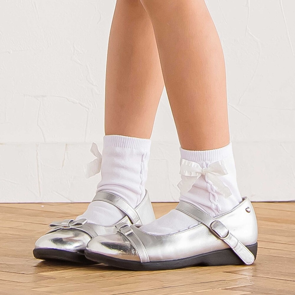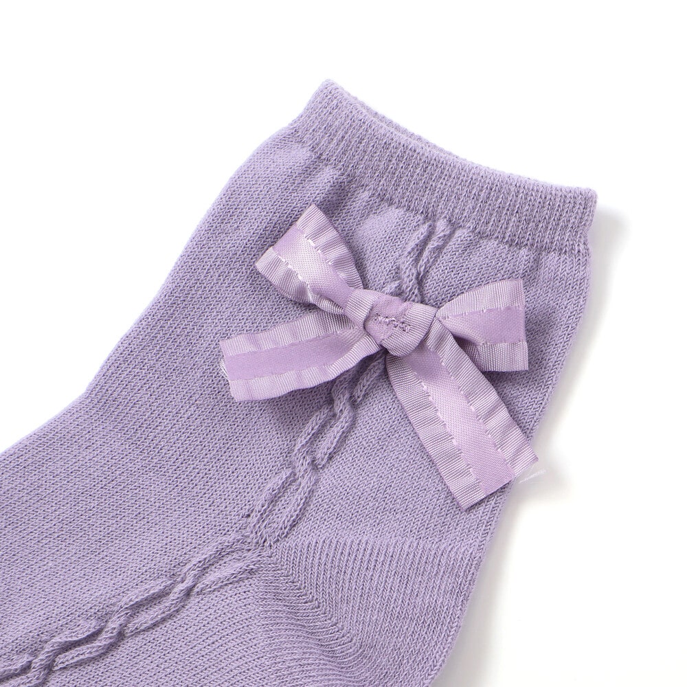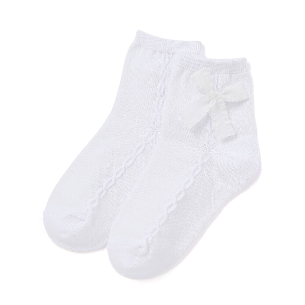 サテンのリボンがワンポイントになったクルー丈のソックス。