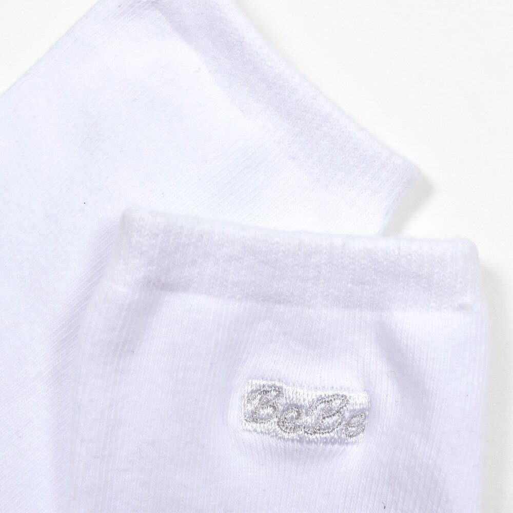 BeBeのロゴ刺しゅうがアクセントになったクルーソックス。