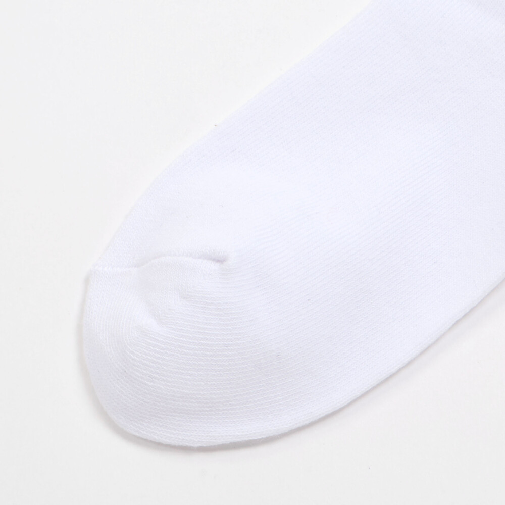 エンブレム風の刺しゅうとラインがアクセントになったクルーソックス。