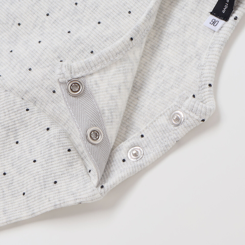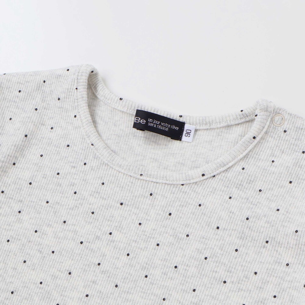 長袖Tシャツは伸縮の良いテレコ素材で子供っぽくなりすぎないドットのサイズ感にこだわりました。