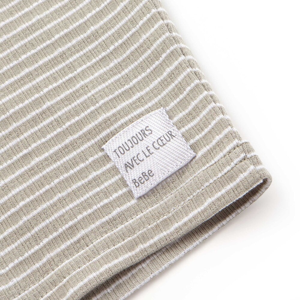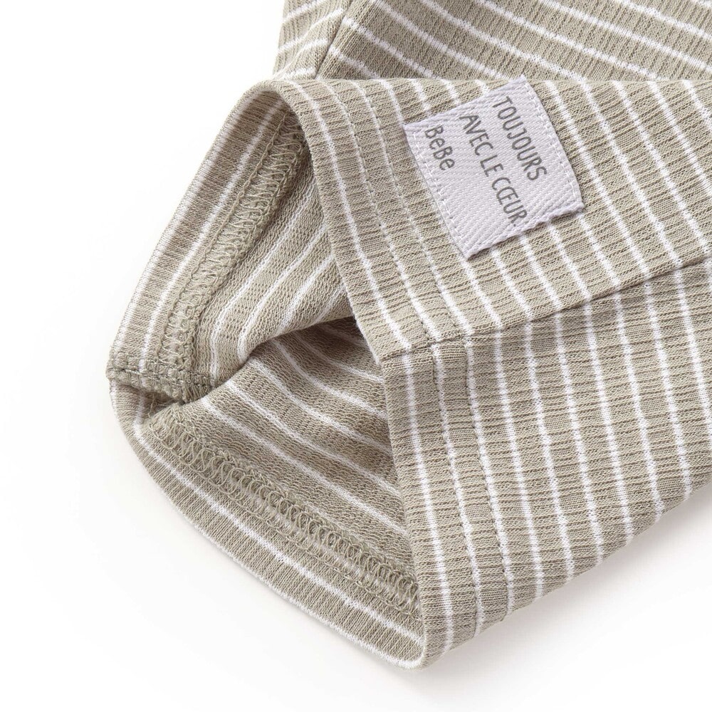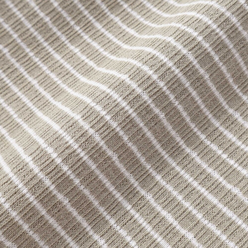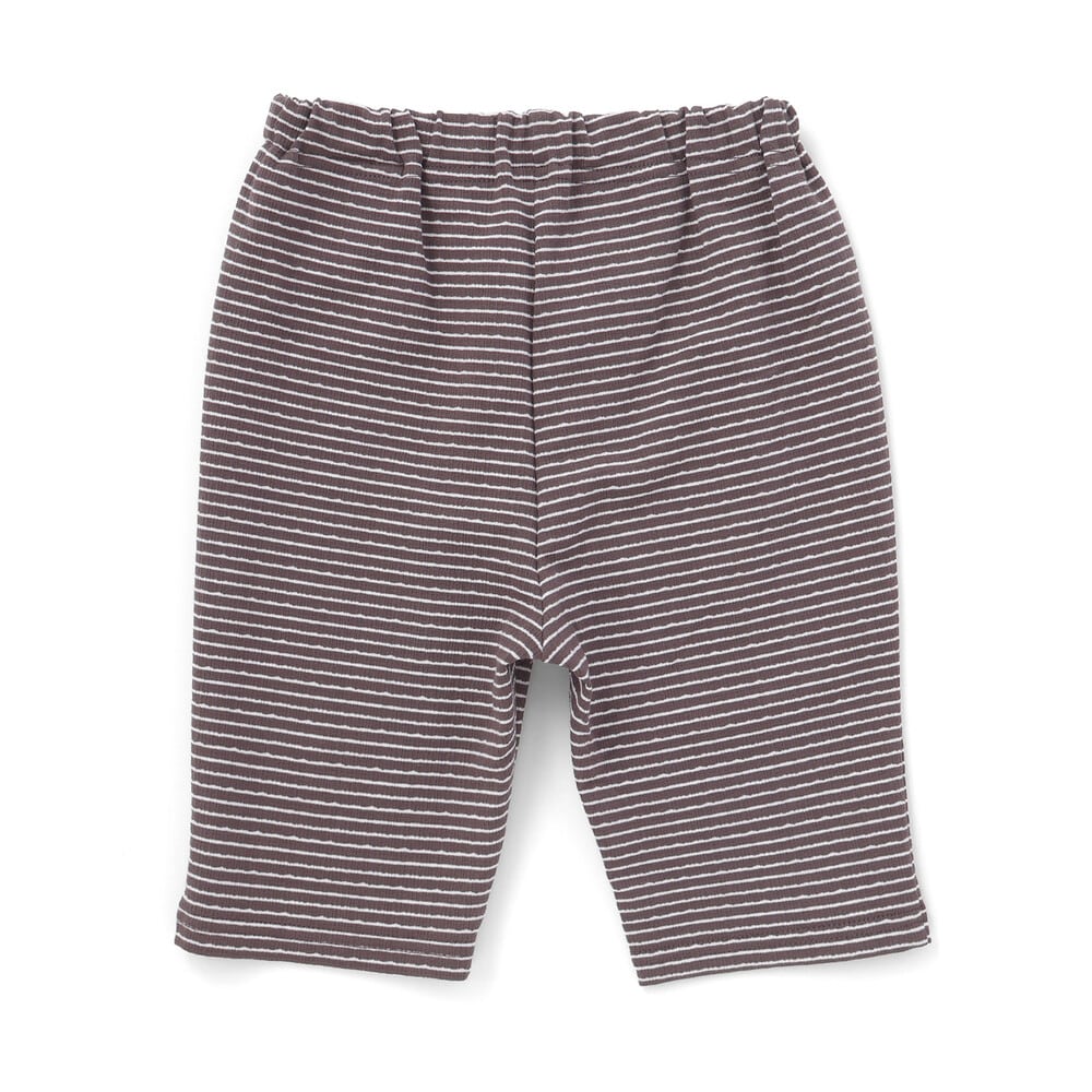パンツは不規則な縦の畝でにじみ感のあるボーダーになったニュアンスボーダーの生地を使用。