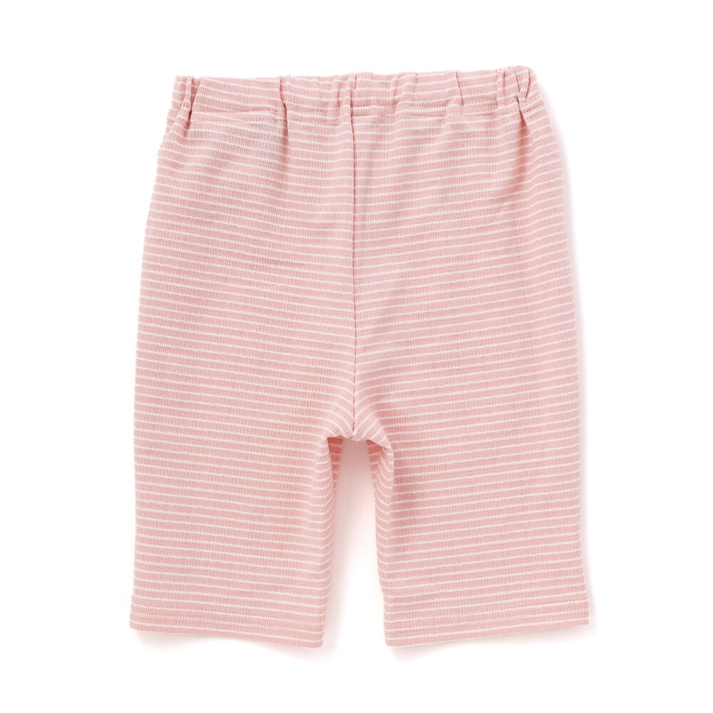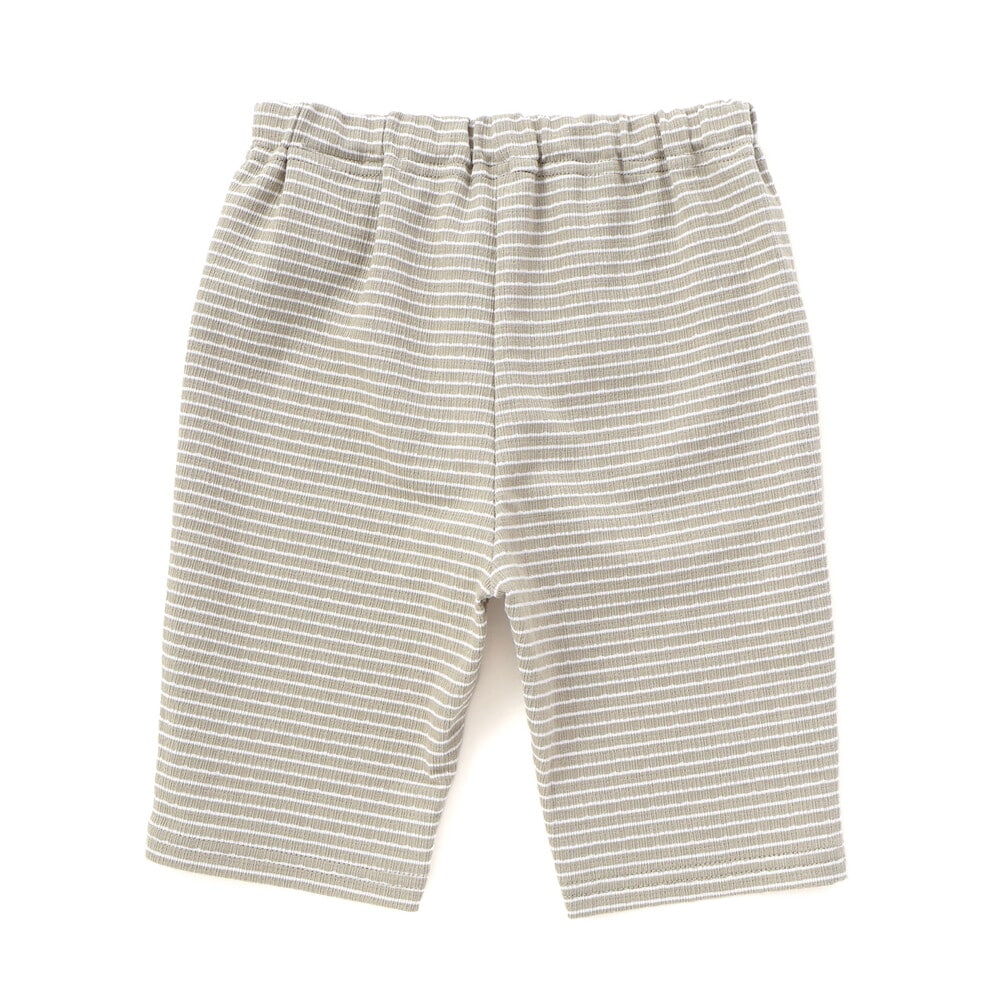ニュアンスのあるボーダー生地の5.5分丈パンツはナチュラルな雰囲気で、程よいゆとりのあるシルエット。